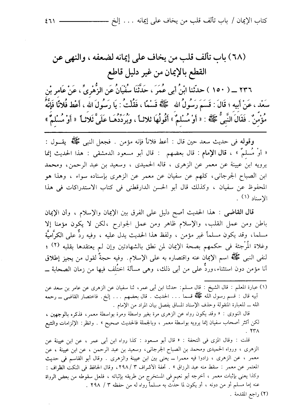 (68) باب تألف قلب من يخاف على إيمانه لضعفه، والنهى عن القطع بالإيمان من غير دليل قاطع