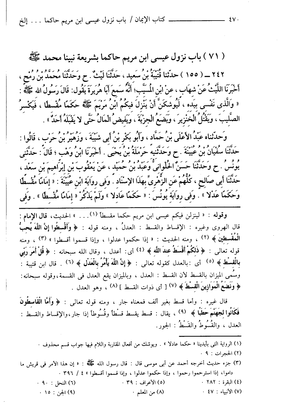 (71) باب نزول عيسى ابن مريم حاكماً بشريعة نبينا محمد صَلَّى اللهُ عَلَيْهِ وَسَلَّمَ