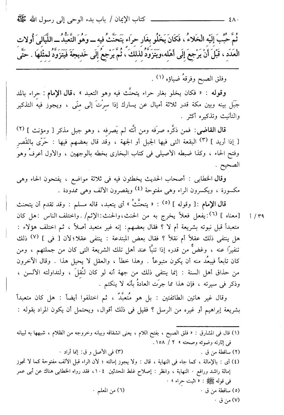 (¬4) أى: بالإمالة، كما جاء فى النهاية، قال: ولا يجوز إمالته؛ لأن الراء قبل الألف مفتوحة كما لا تجوز إمالة راشد ورافع. النهاية، وانظر: إصلاح غلط المحدثين 104، فقد رواه الخطابى هناك عن أبى عمر فى قوله صَلَّى اللهُ عَلَيْهِ وَسَلَّمَ: " اثبت حراء ".