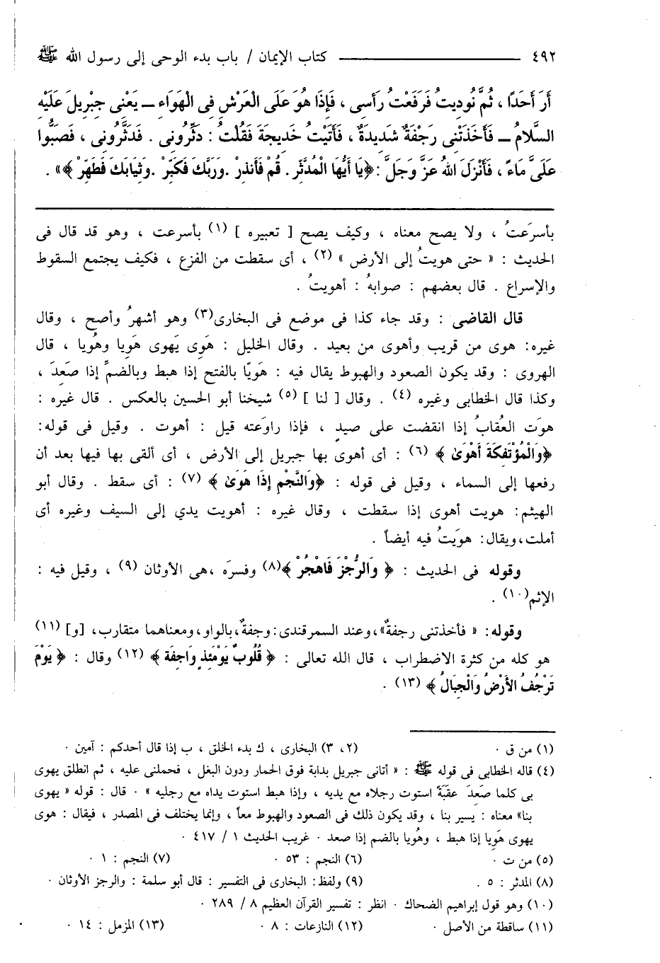 بأسرَعتُ، ولا يصح معناه، وكيف يصبح [تعبيره] (¬1) بأسرعت، وهو قد قال فى الحديث: " حتى هويتُ إلى الأرض " (¬2)، أى سقطت من الفزع، فكيف يجتمع السقوط والإسراع. قال بعضهم: صوابهُ: أهويتُ.