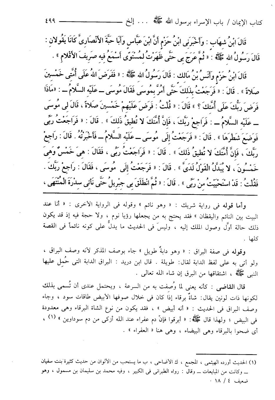 وأما قوله فى رواية شريك: " وهو نائم " وقوله فى الرواية الأخرى: " أنا عند البيت بين النائم واليقظان " فقد يحتج به من يجعلها رؤيا نوم، ولا حجة فيه إذ قد يكون ذلك حالة أوَّل وصول الملك إليه، وليسَ فى الحديث ما يدلُّ على كونه نائماً فى القصة كلها.