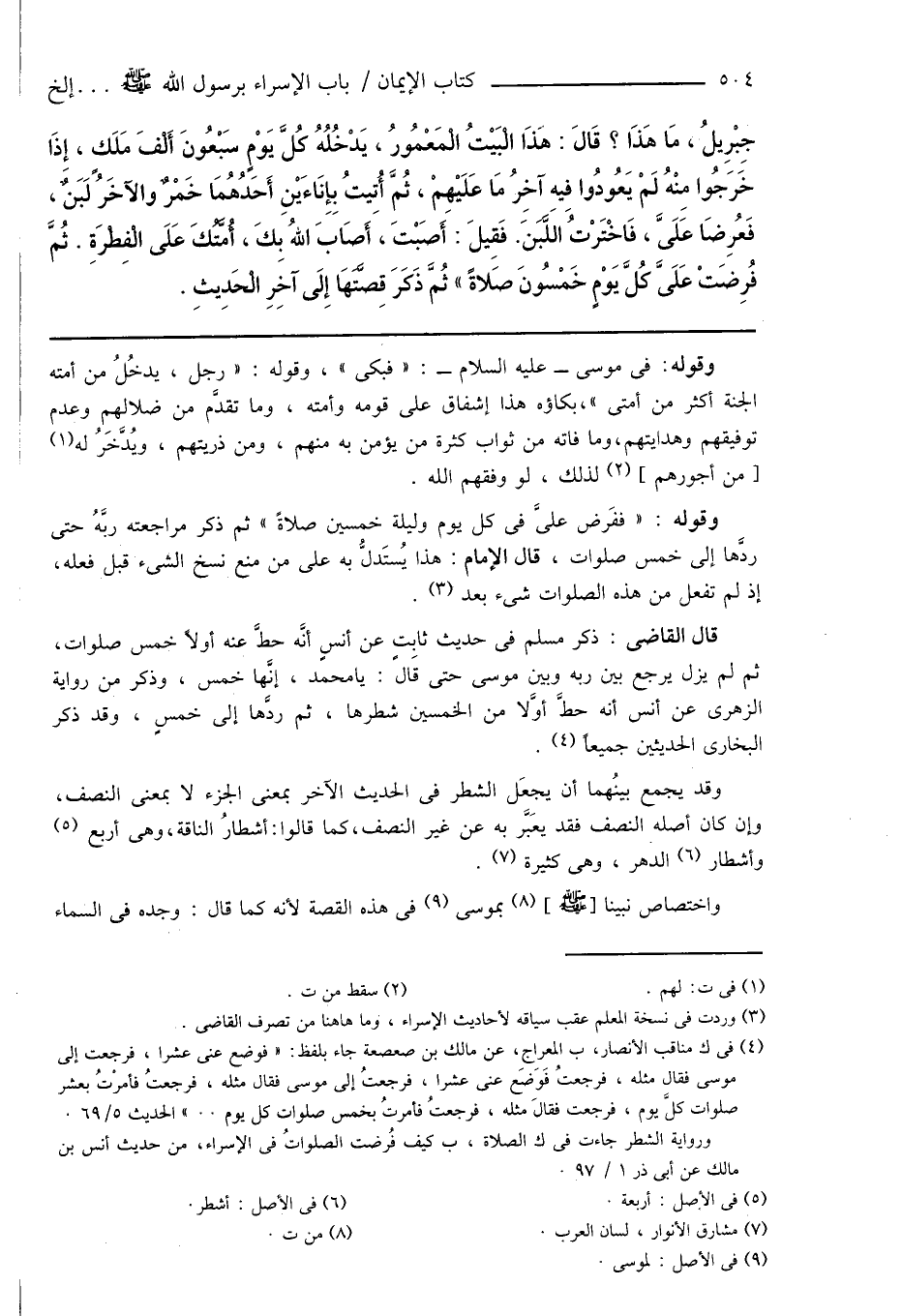 (¬4) فى ك مناقب الأنصار، ب المعراج، عن مالك بن صعصعة جاء بلفظ: " فوضع عنى عشراً، فرجعت إلى موسى فقال مثله، فرجعتُ فَوَضَع عنى عشراً، فرجعتُ إلى موسى فقال مثله، فرجعتُ فأمرْتُ بعشر صلوات كلَّ يوم، فرجعت فقالَ مثله، فرجعتُ فأمرتُ بخمس صلوات كل يوم .. " الحديث 5/ 69. ورواية الشطر جاءت فى ك الصلاة، ب كيف فُرضت الصلواتُ فى الإسراء، من حديث أنس بن مالك عن أبى ذر 1/ 97.