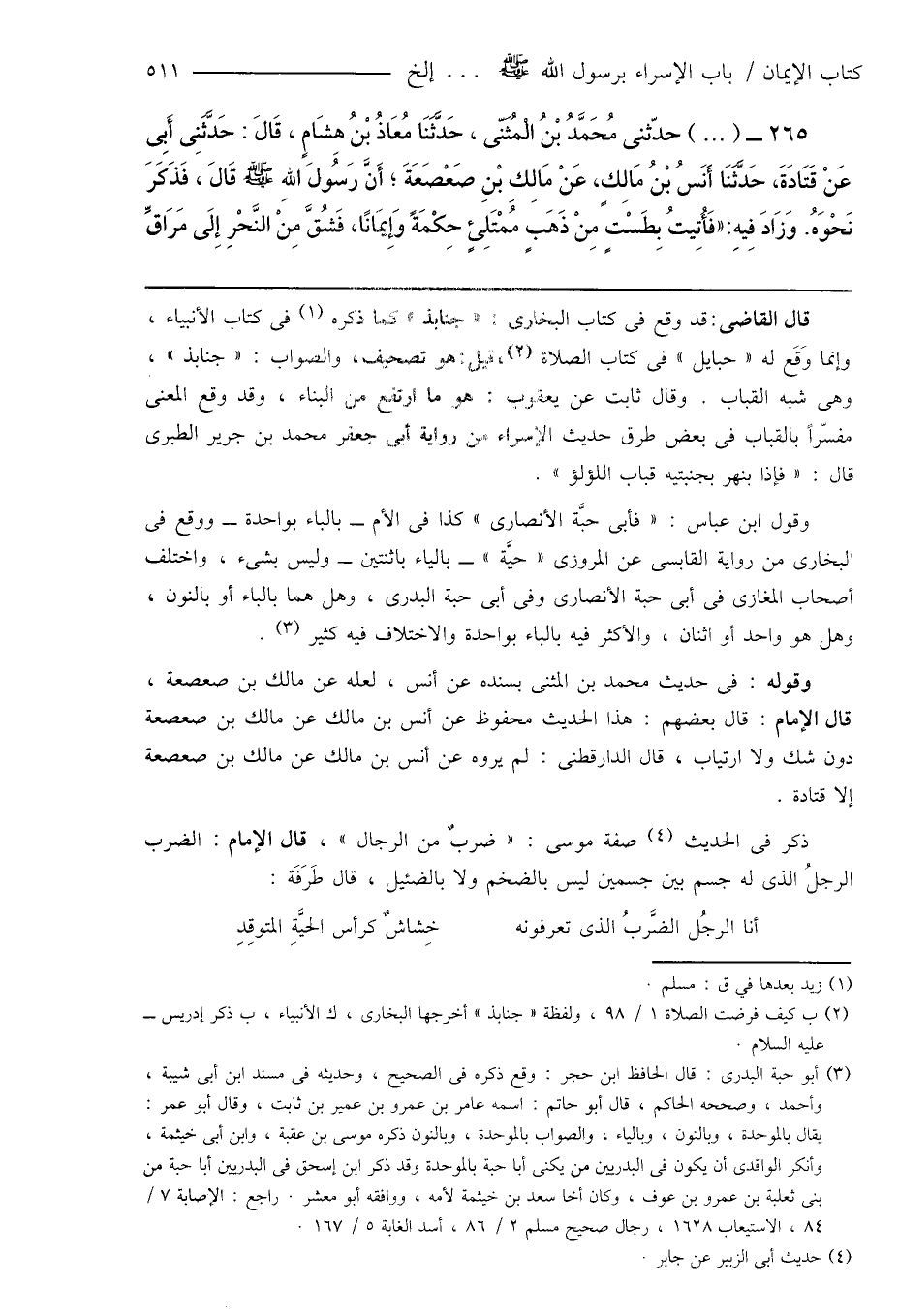 وقوله: فى حديث محمد بن المثنى بسنده عن أنس، لعله عن مالك بن صعصعة، قال الإمام: قال بعضهم: هذا الحديث محفوظ عن أنس بن مالك عن مالك بن صعصعة دون شك ولا ارتياب، قال الدارقطنى: لم يروه عن أنس بن مالك عن مالك بن صعصعة إلا قتادة.