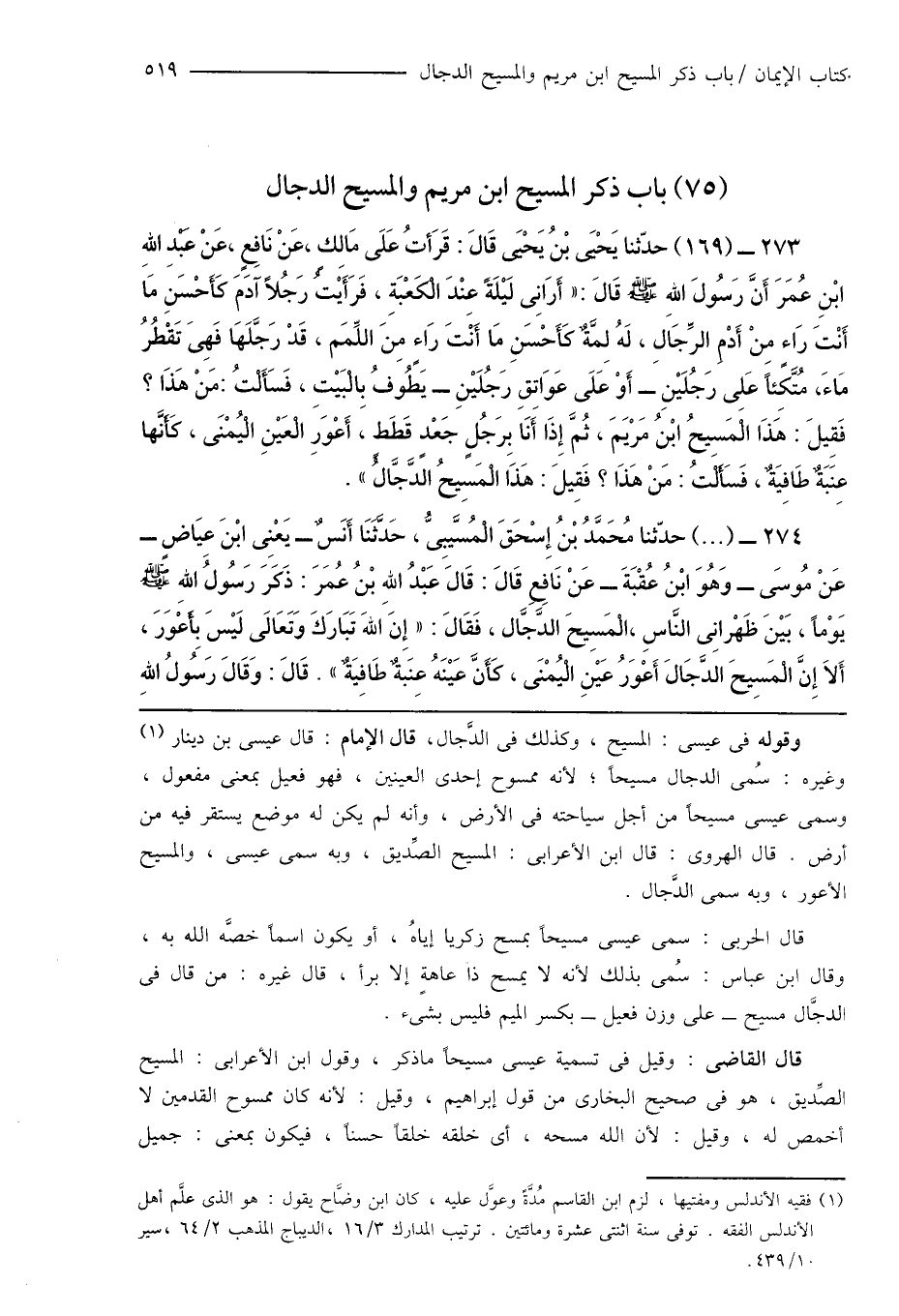 (75) باب ذكر المسيح ابن مريم والمسيح الدجال