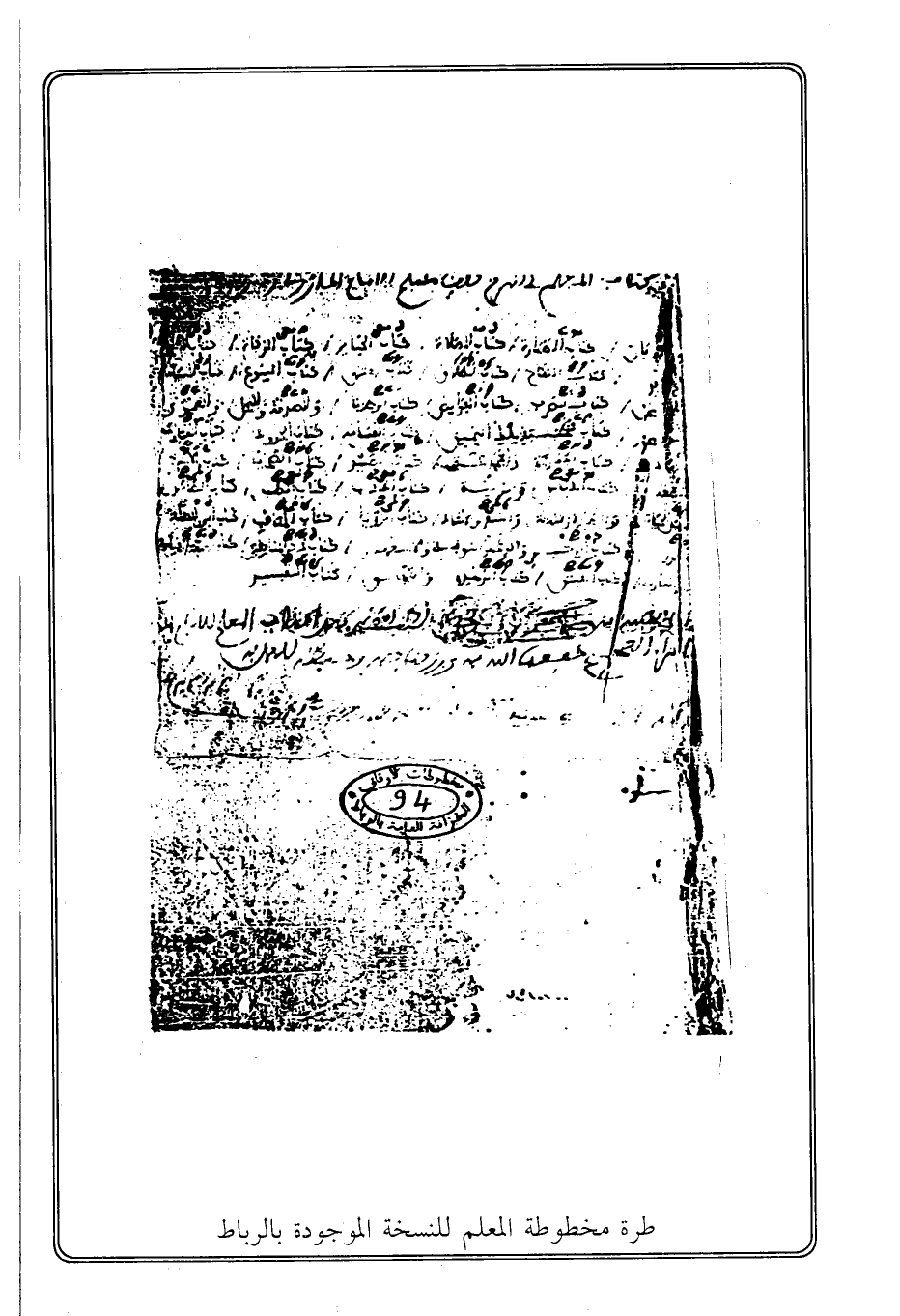 طرة مخطوطة المعلم للنسخة الموجودة بالرباط