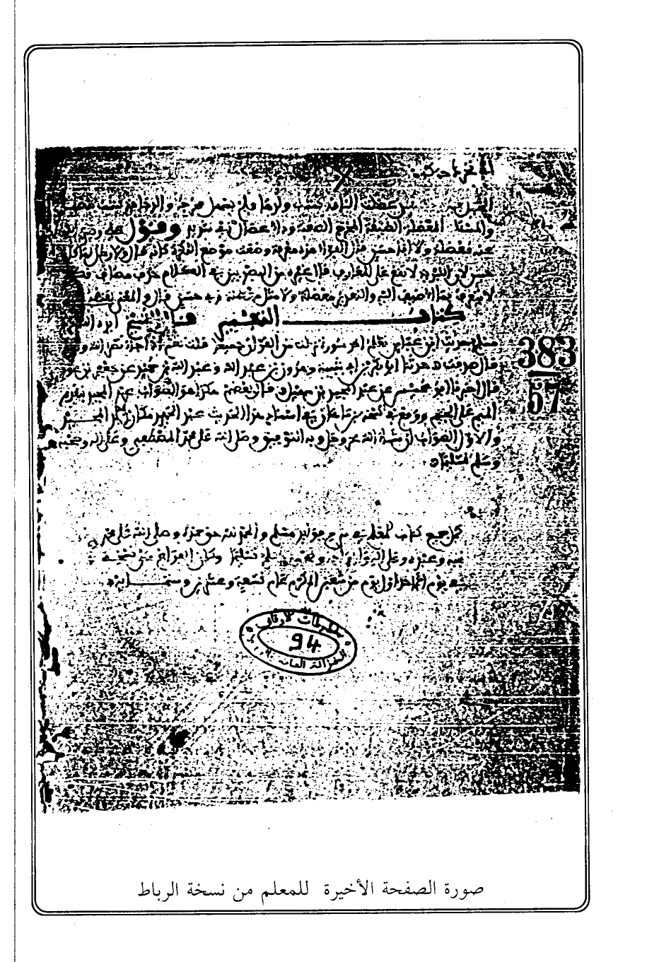 صورة الصفحة الأخيرة للمعلم من نسخة الرباط