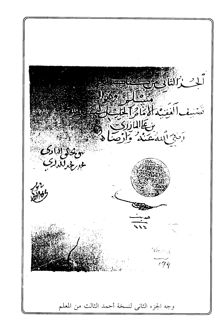 وجه الجزء الثانى لنسخة أحمد الثالث من المعلم