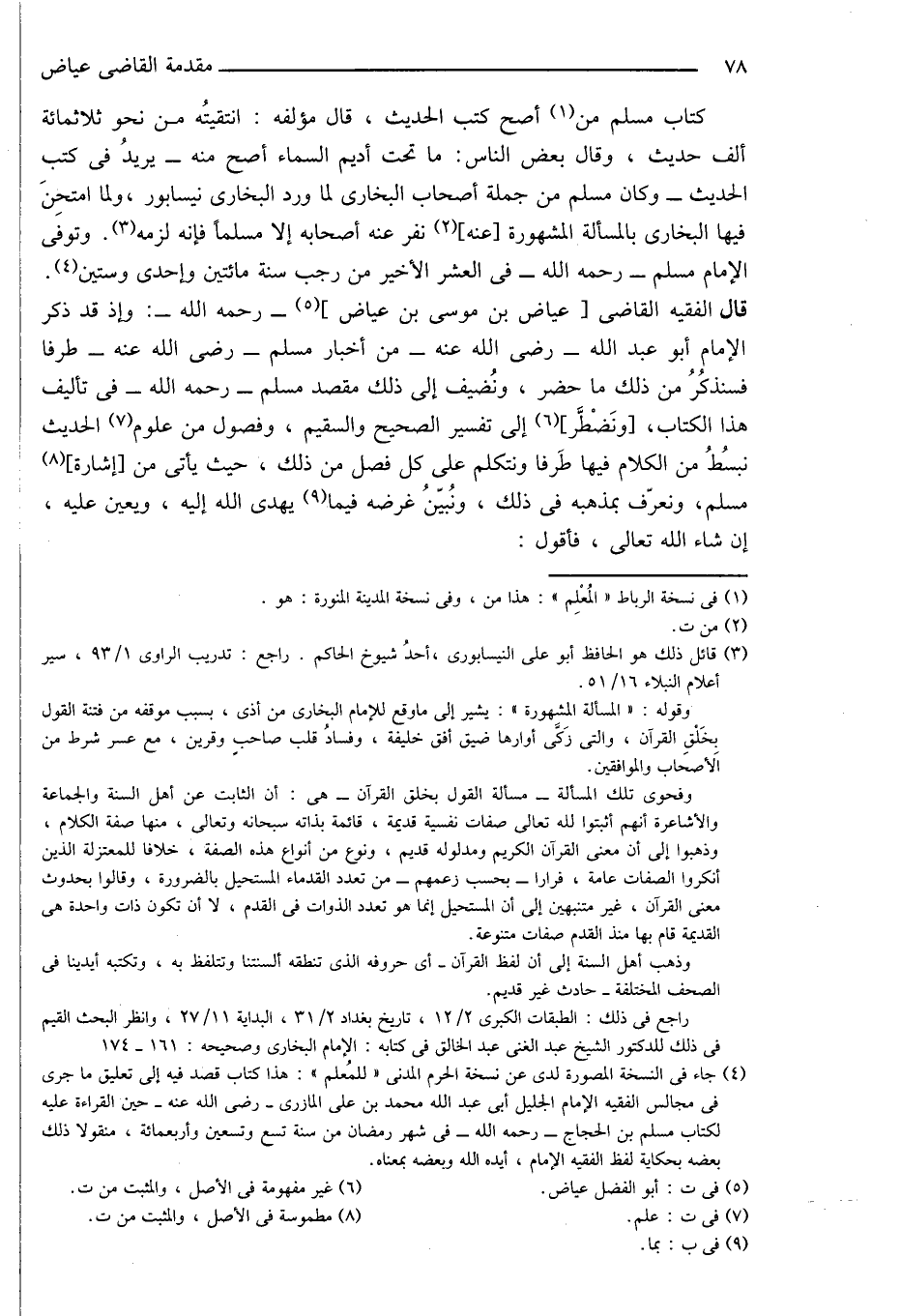 (¬4) جاء فى النسخة المصورة لدى عن نسخة الحرم المدنى " للمُعلم ": هذا كتاب قصد فيه إلى تعليق ما جرى فى مجالس الفقيه الإمام الجليل أبى عبد الله محمد بن على المازرى -رضى الله عنه- حين القراءة عليه لكتاب مسلم بن الحجاج- رحمه الله- فى شهر رمضان من سنة تسع وتسعين وأربعمائة، منقولاً ذلك بعضه بحكاية لفظ الفقيه الإمام، أيده الله وبعضه بمعناه.