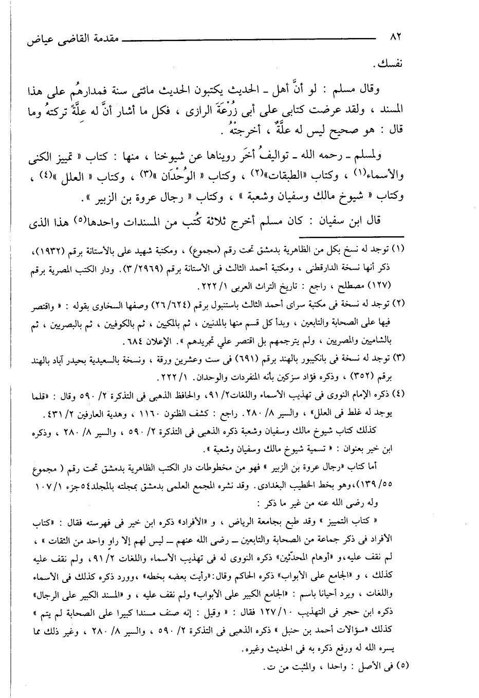 ولمسلم - رحمه الله - تواليفُ أخَر رويناها عن شيوخنا، منها: كتاب " تمييز الكنى والأسماء (¬1)، وكتاب " الطبقات " (¬2)، وكتاب " الوُحْدَان " (¬3)، وكتاب " العلل " (¬4)، وكتاب " شيوخ مالك وسفيان وشعبة "، وكتاب " رجال عروة بن الزبير ".