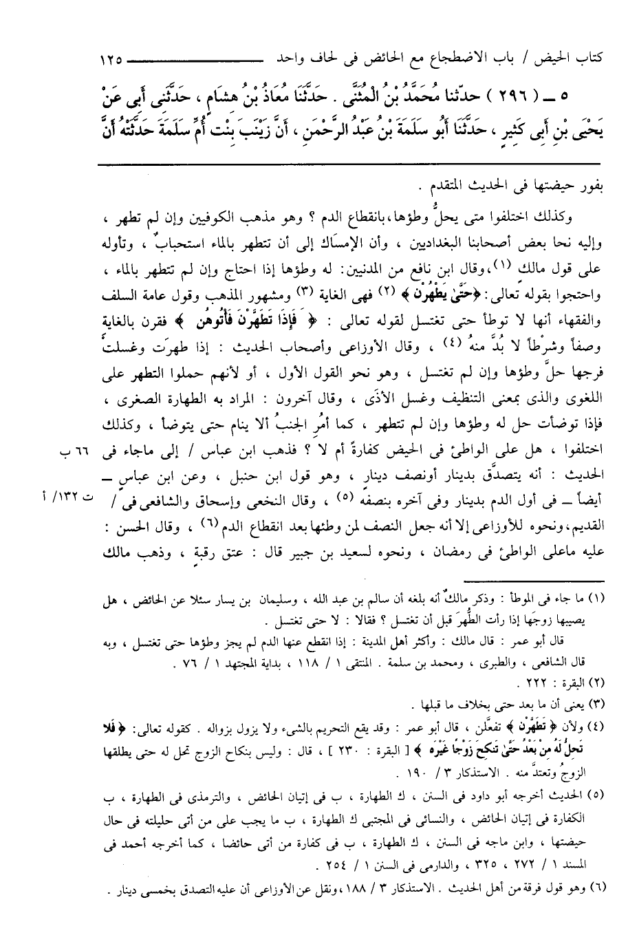 (¬1) ما جاء فى الموطأ: وذكر مالكٌ أنه بلغه أن سالم بن عبد الله، وسليمان بن يسار سئلا عن الحائض، هل يصيبها زوجَها إذا رأت الطُّهرَ قبل أن تغتسل؟ فقالا: لا حتى تغتسل.