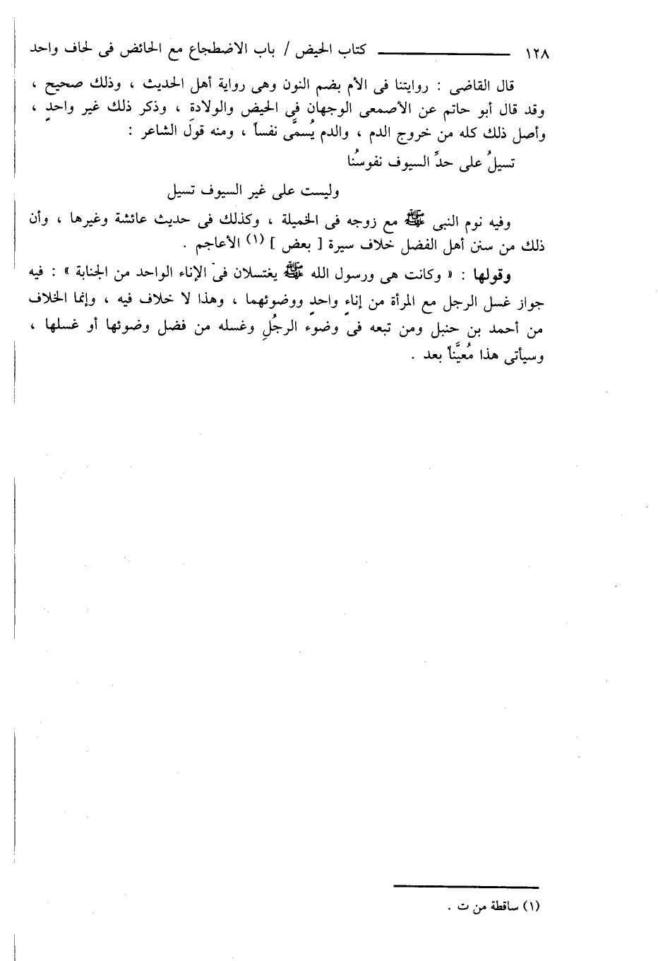 قال القاضى: روايتنا فى الأم بضم النون وهى رواية أهل الحديث، وذلك صحيح، وقد قال أبو حاتم عن الأصمعى الوجهان فِي الحيض والولادةِ، وذكر ذلك غير واحدٍ، وأصل ذلك كله من خروج الدم، والدم يُسمَّى نفساً، ومنه قول الشاعر: