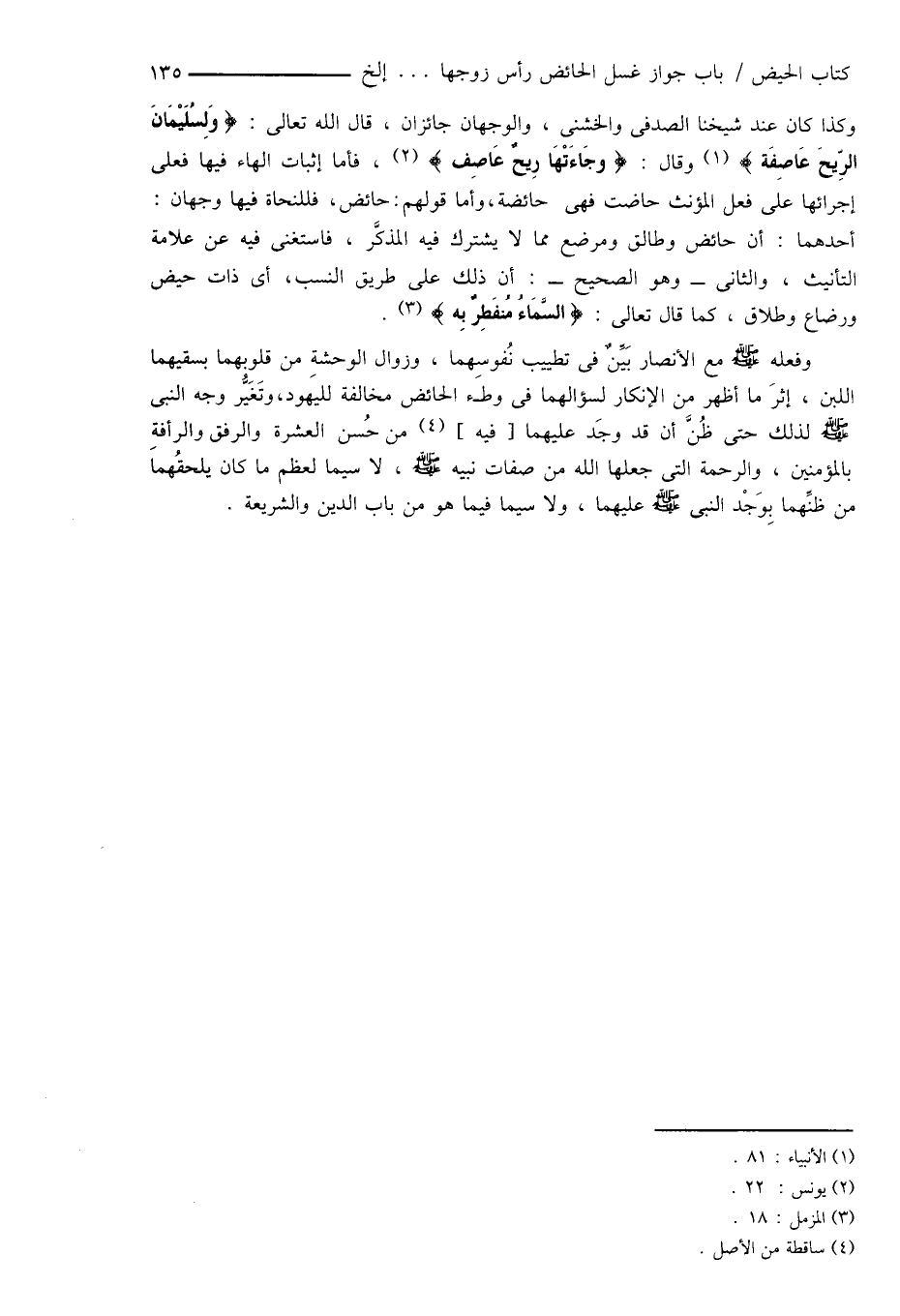 وفعله صَلَّى اللهُ عَلَيْهِ وَسَلَّمَ مع الأنصار بَيِّنٌ فى تطييب نُفوسِهما، وزوال الوحشةِ من قلوبهما بسقيهما اللبن، إثرَ ما أظهر من الإنكار لسؤالهما فى وطء الحائض مخالفة لليهود، وتَغَيُّر وجه النبى صَلَّى اللهُ عَلَيْهِ وَسَلَّمَ لذلك حتى ظُنَّ أن قد وجَد عليهما [فيه] (¬4) من حُسن العشرة والرفق والرأفةِ بالمؤمنين، والرحمة التى جعلها الله من صفات نبيه صَلَّى اللهُ عَلَيْهِ وَسَلَّمَ، لا سيما لعظم ما كان يلحقُهما من ظنِّهما بِوَجْد النبى صَلَّى اللهُ عَلَيْهِ وَسَلَّمَ عليهما، ولا سيما فيما هو من باب الدين والشريعة.