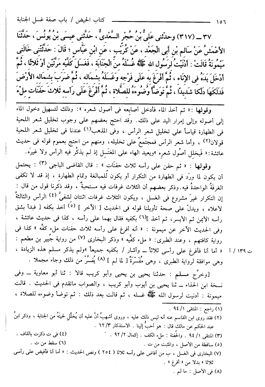 (¬7) البخارى فى الغسل، ب من أفاض على رأسه ثلاثاً (254) ونص الحديث: " أما أنا فأفيض على رأسى ثلاثاً " بدلاً من " أفرغ ".