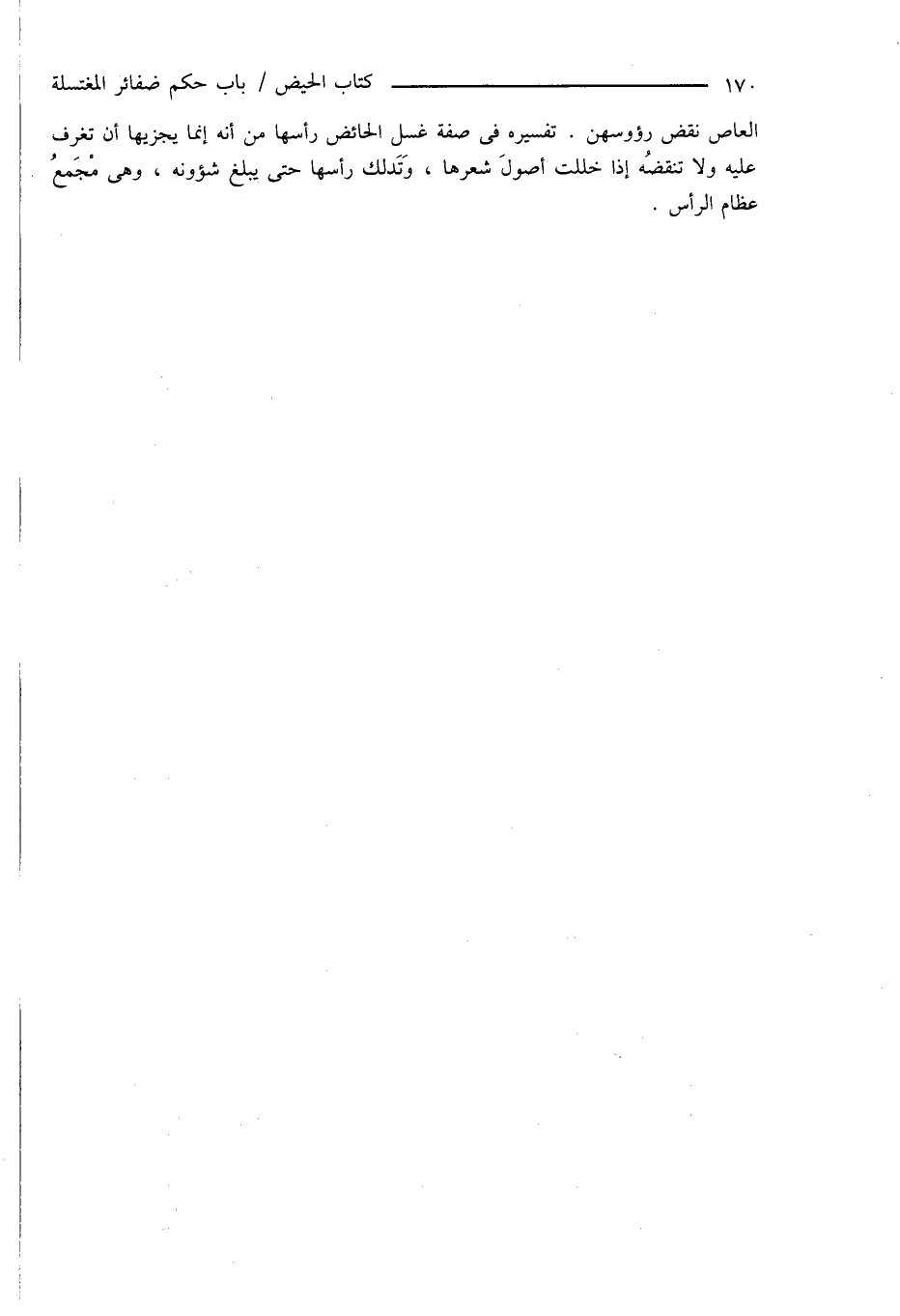 العاص نقض رؤوسهن. تفسيره فى صفة غسل الحائض رأسها من أنه إنما يجزيها أن تغرف عليه ولا تنقضُه إذا خللت أصولَ شعرها، وَتَدلك رأسها حتى يبلغ شؤونه، وهى مجمعُ عظام الرأس.