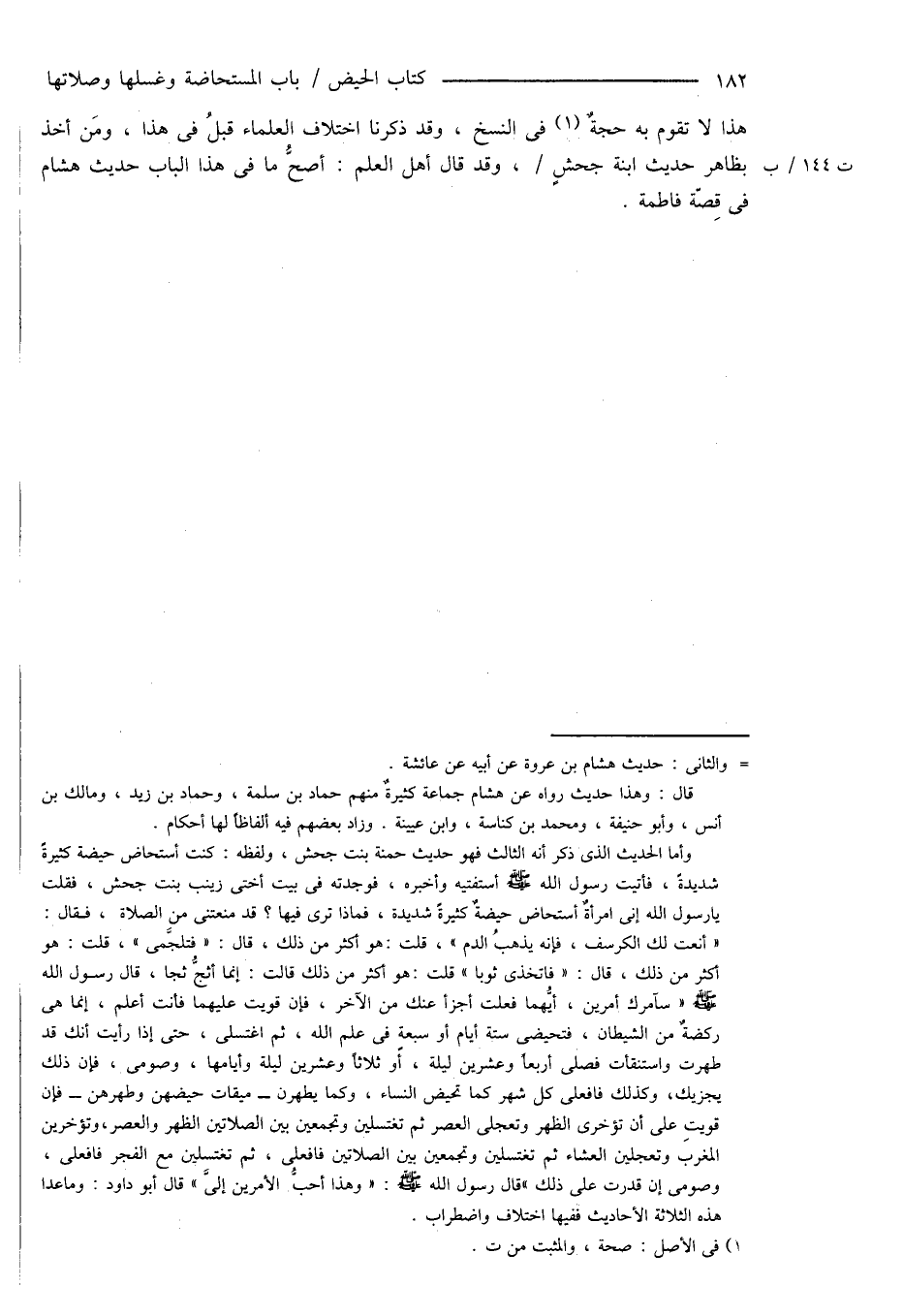 قال: وهذا حديث رواه عن هشام جماعة كثيرةٌ منهم حماد بن سلمة، وحماد بن زيد، ومالك بن أنس، وأبو حنيفة، ومحمد بن كناسة، وابن عيينة. وزاد بعضهم فيه ألفاظاً لها أحكام.