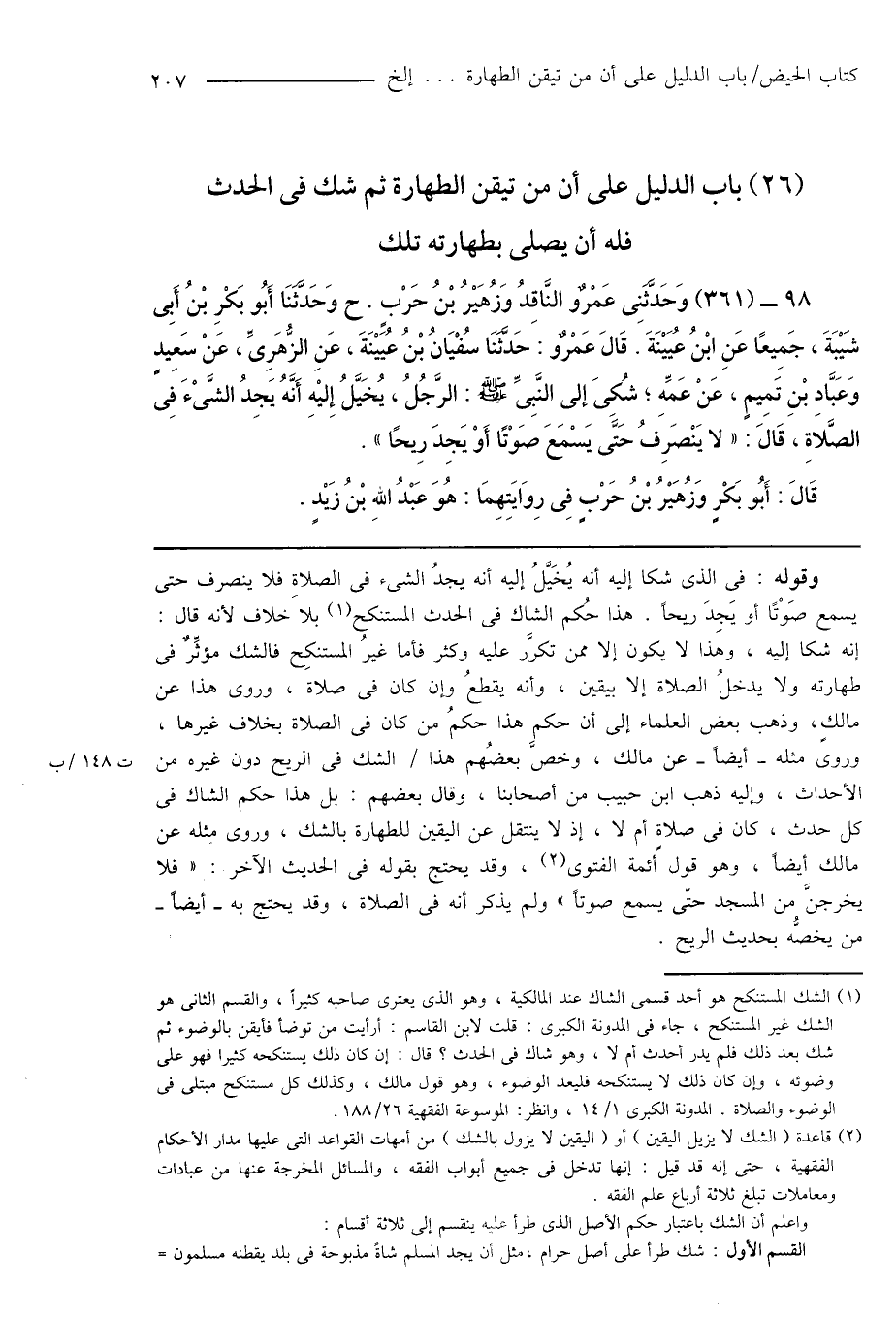 (26) باب الدليل على أن من تيقن الطهارة ثم شك فى الحدث فله أن يصلى بطهارته تلك