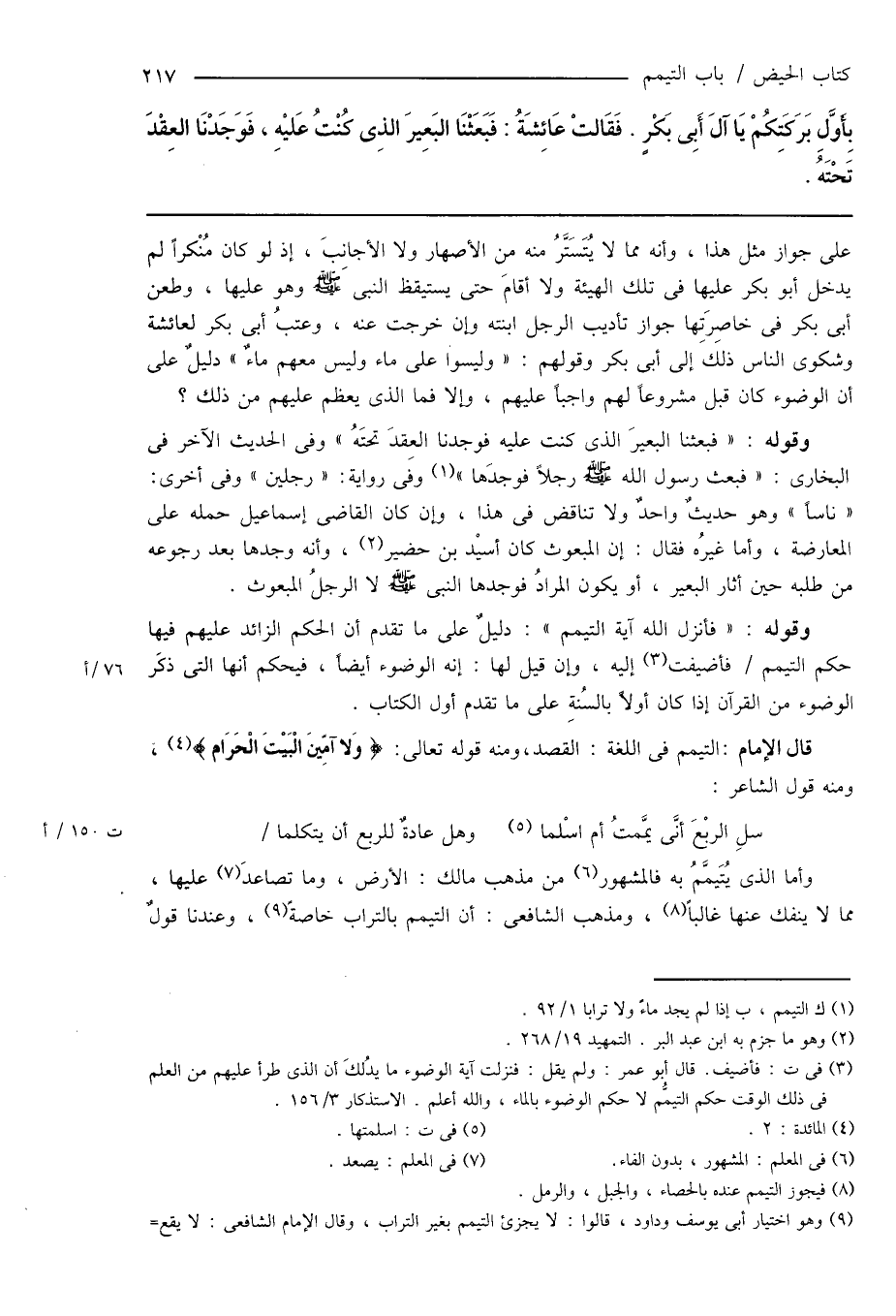 (¬3) فى ت: فأضيف. قال أبو عمر: ولم يقل: فنزلت آية الوضوء ما يدُلكَ أن الذى طرأ عليهم من العلم فى ذلك الوقت حكم التيمُّم لا حكم الوضوء بالماء، والله أعلم. الاستذكار 3/ 156.