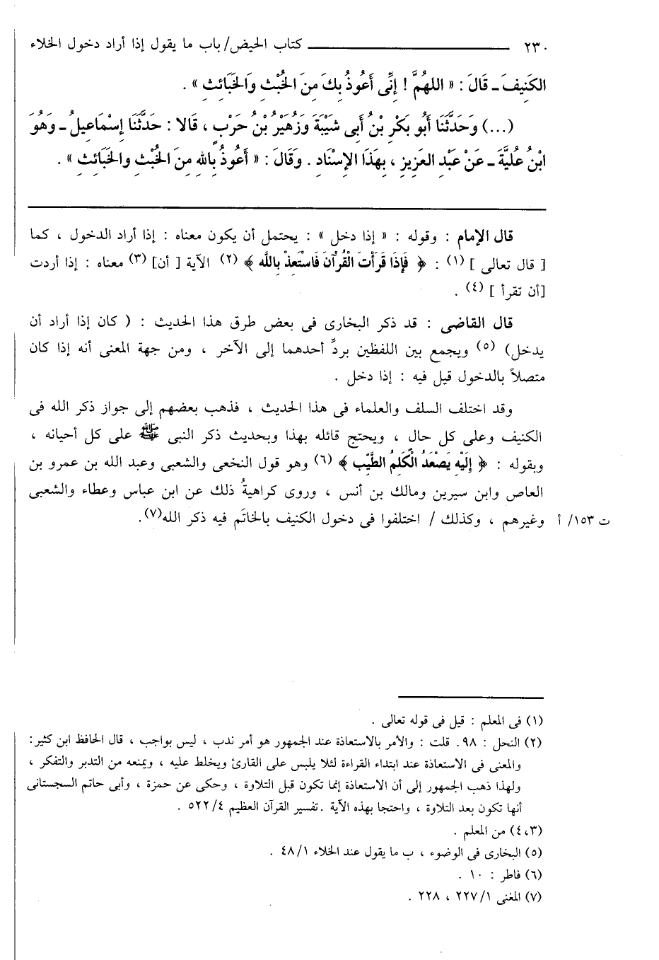 (¬5) البخارى فى الوضوء، ب ما يقول عند الخلاء 1/ 48.