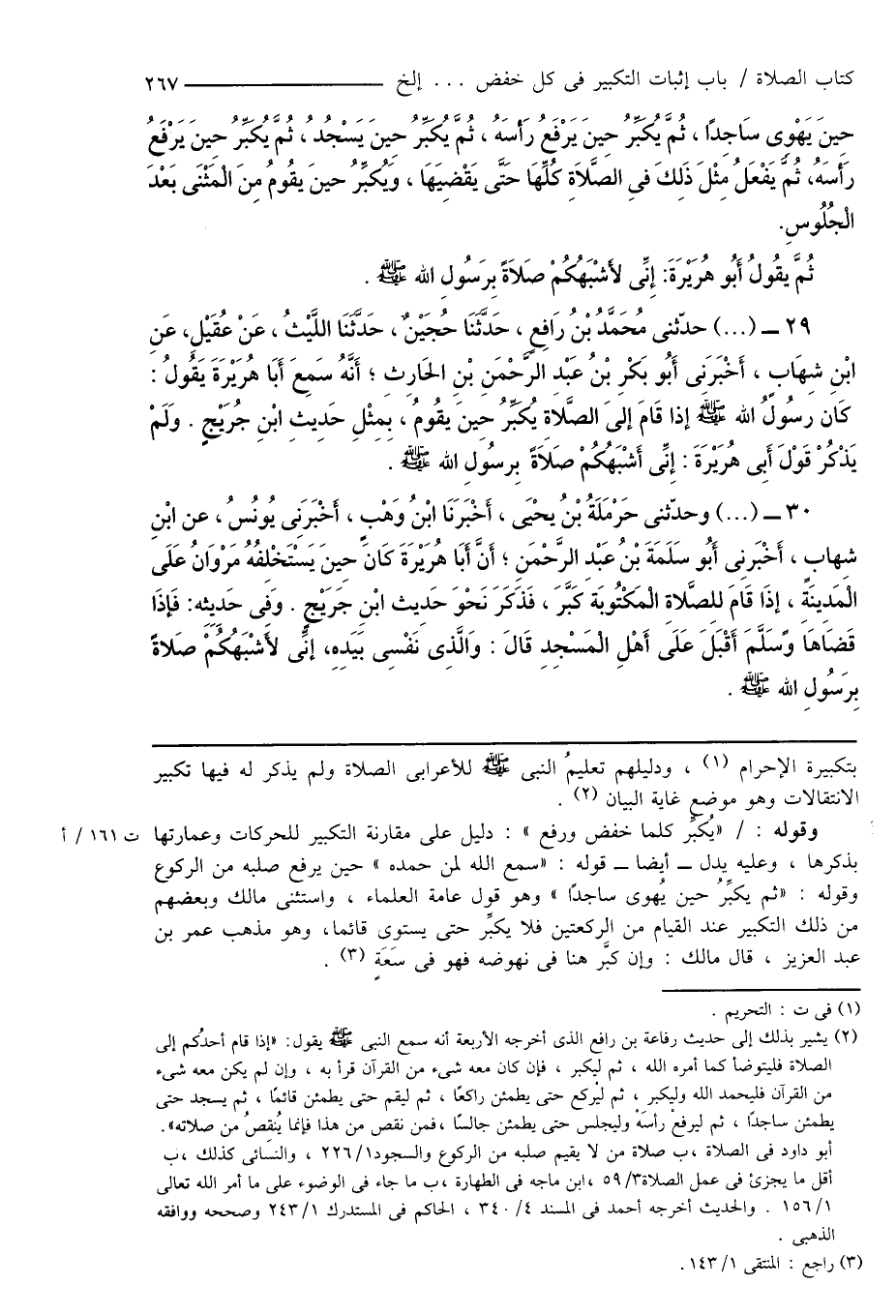 29 - (...) حدّثنى مُحَمَّدُ بْنُ رَافِعٍ، حَدَّثَنَا حُجَيْنٌ، حَدَّثَنَا اللَّيْثُ، عَنْ عُقَيْلِ، عَنِ ابْنِ شِهَابٍ، أَخْبَرَنِى أَبُو بَكْرِ بْنُ عَبْدِ الرَّحْمَنِ بْنِ الحَارِثِ؛ أَنَّهُ سَمِعَ أَبَا هُرَيْرَةَ يَقُولُ: كَان رسُولُ اللهِ صَلَّى اللهُ عَلَيْهِ وَسَلَّمَ إِذَا قَامَ إِلَى الصَّلَاةِ يُكَبِّرُ حِينَ يقُومُ، بِمِثْلِ حَدِيثِ ابْنِ جُرَيْجٍ. وَلَمْ يَذْكُرْ قَوْلَ أَبِى هُرَيْرَةَ: إِنِّى أَشْبَهُكُمْ صَلَاةً بِرسُولِ اللهِ صَلَّى اللهُ عَلَيْهِ وَسَلَّمَ.