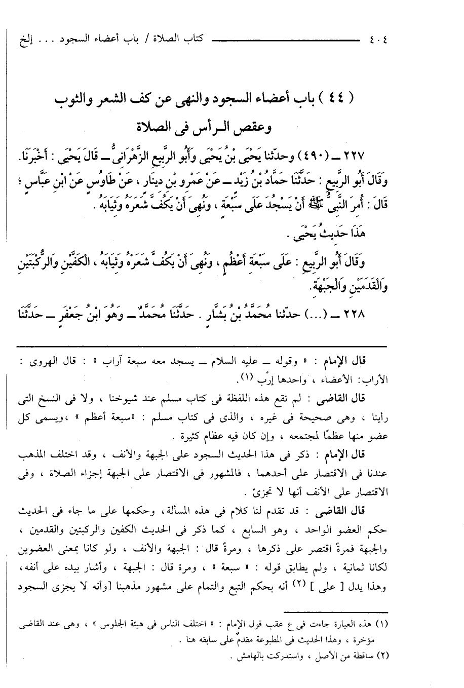 (44) باب أعضاء السجود والنهى عن كف الشعر والثوب وعقص الرأس فى الصلاة