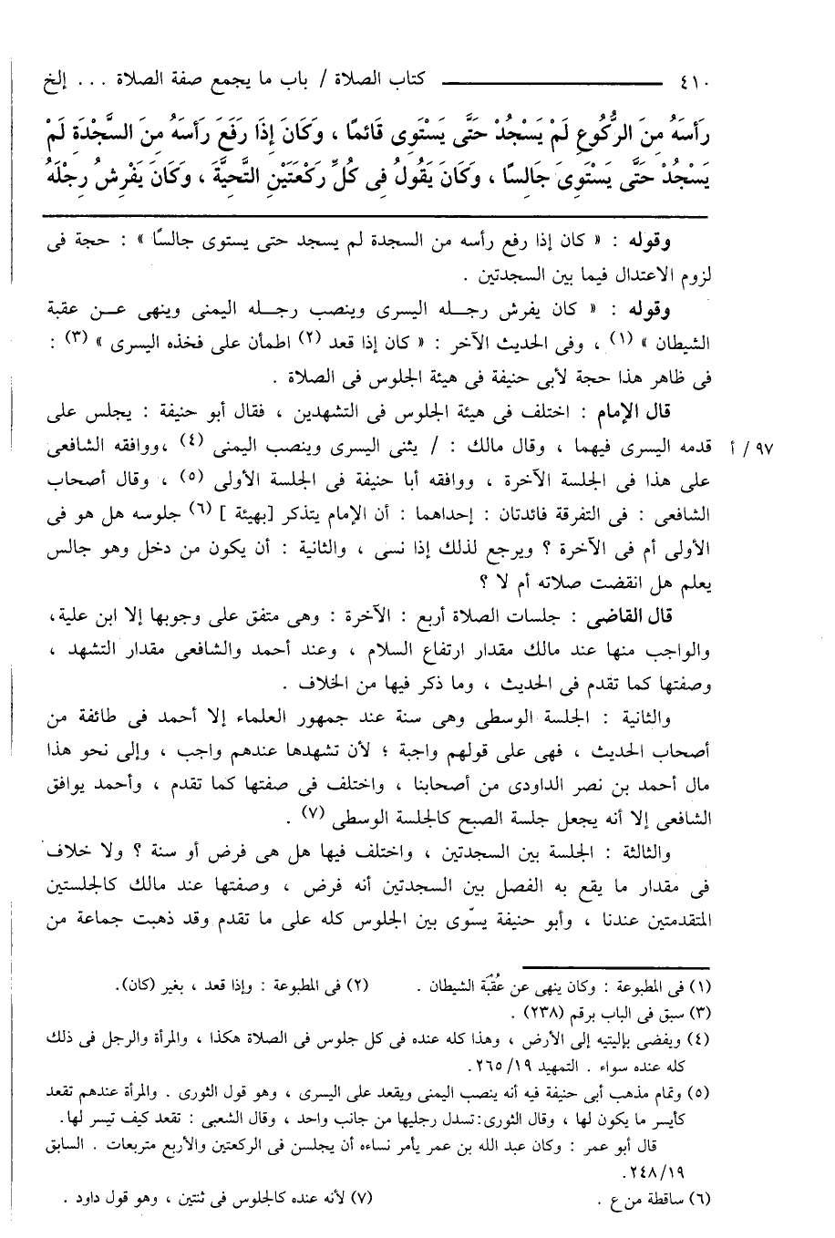 (¬4) ويفضى بإليتيه إلى الأرض، وهذا كله عنده فى كل جلوس فى الصلاة هكذا، والمرأة والرجل فى ذلك كله عنده سواء. التمهيد 19/ 265.