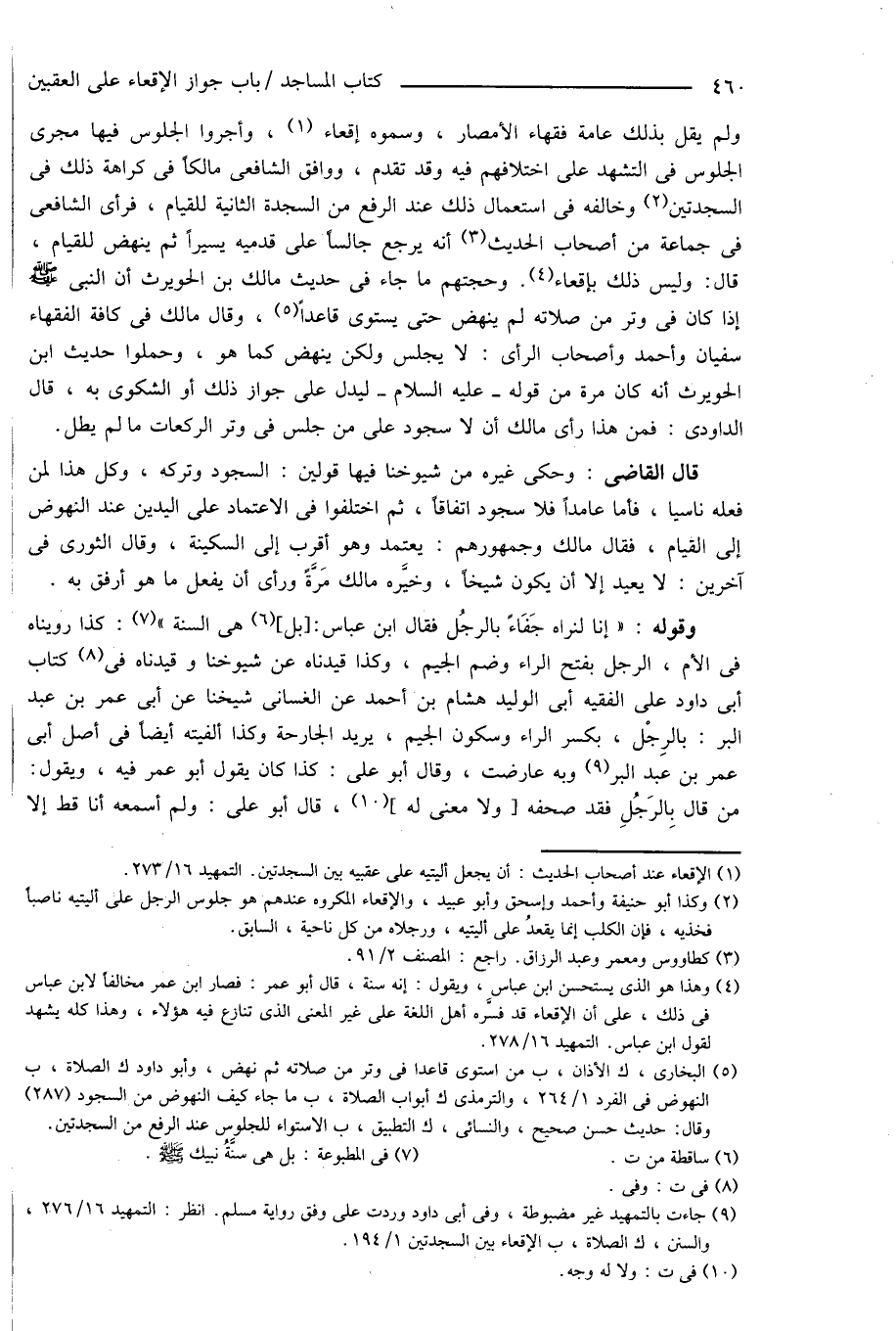 (¬9) جاءت بالتمهيد غير مضبوطة، وفى أبى داود وردت على وفق رواية مسلم. انظر: التمهيد 16/ 276، والسنن، ك الصلاة، ب الإقعاء بين السجدتين 1/ 194.