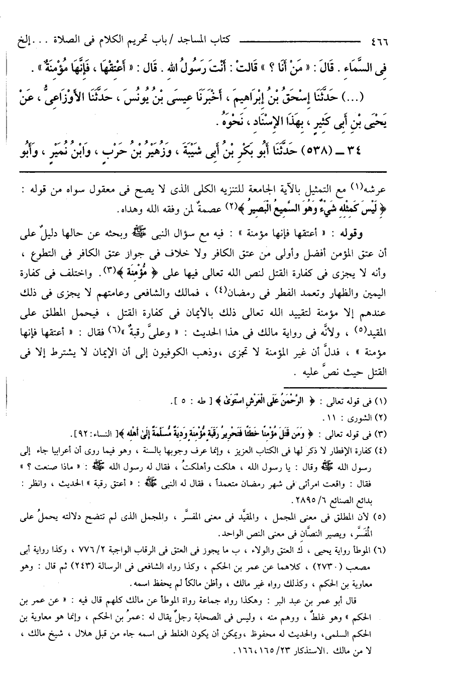 فِى السَّمَاءِ. قَالَ: " مَنْ أَنَا؟ " قَالتْ: أَنْتَ رَسُولُ اللهِ. قَال: " أَعْتِقْهَا، فَإِنَّهَا مُؤْمِنَةٌ ". (...) حَدَّثَنَا إِسْحَاقُ بْنُ إِبْرَاهِيمَ، أَخْبَرَنَا عِيسَى بْنُ يُونُسَ، حَدَّثَنَا الأَوْزَاعِىُّ، عَنْ يَحْيَى بْنِ أَبِى كَثِيرٍ، بِهَذَا الإِسْنَادِ، نَحْوَهُ.