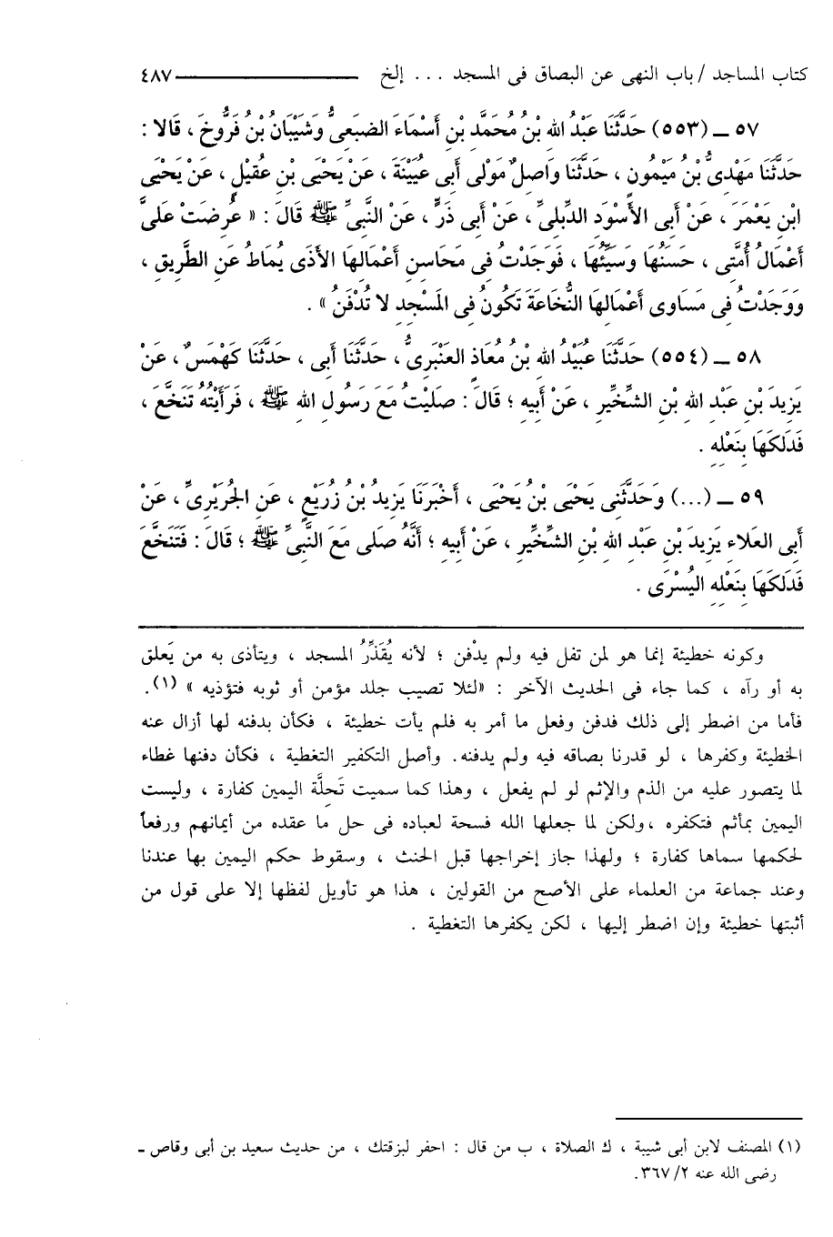 (¬1) المصنف لابن أبى شيبة، ك الصلاة، ب من قال: احفر لبزقتك، من حديث سعيد بن أبى وقاص - رضى الله عنه 2/ 367.