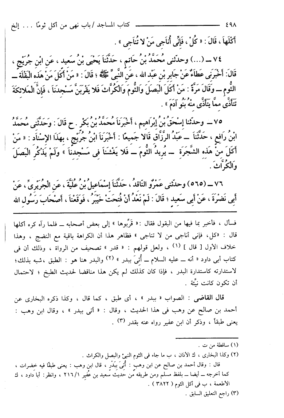 (¬2) وكذا البخارى، ك الأذان، ب ما جاء فى الثوم النيئ والبصل والكراث.