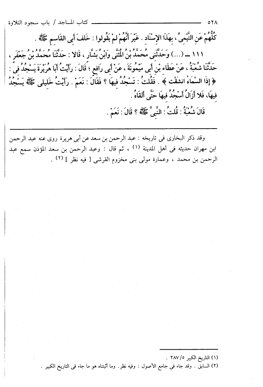 (¬2) السابق. وقد جاء فى جامع الأصول: وفيه نظر. وما أثبتناه هو ما جاء فى التاريخ الكبير.