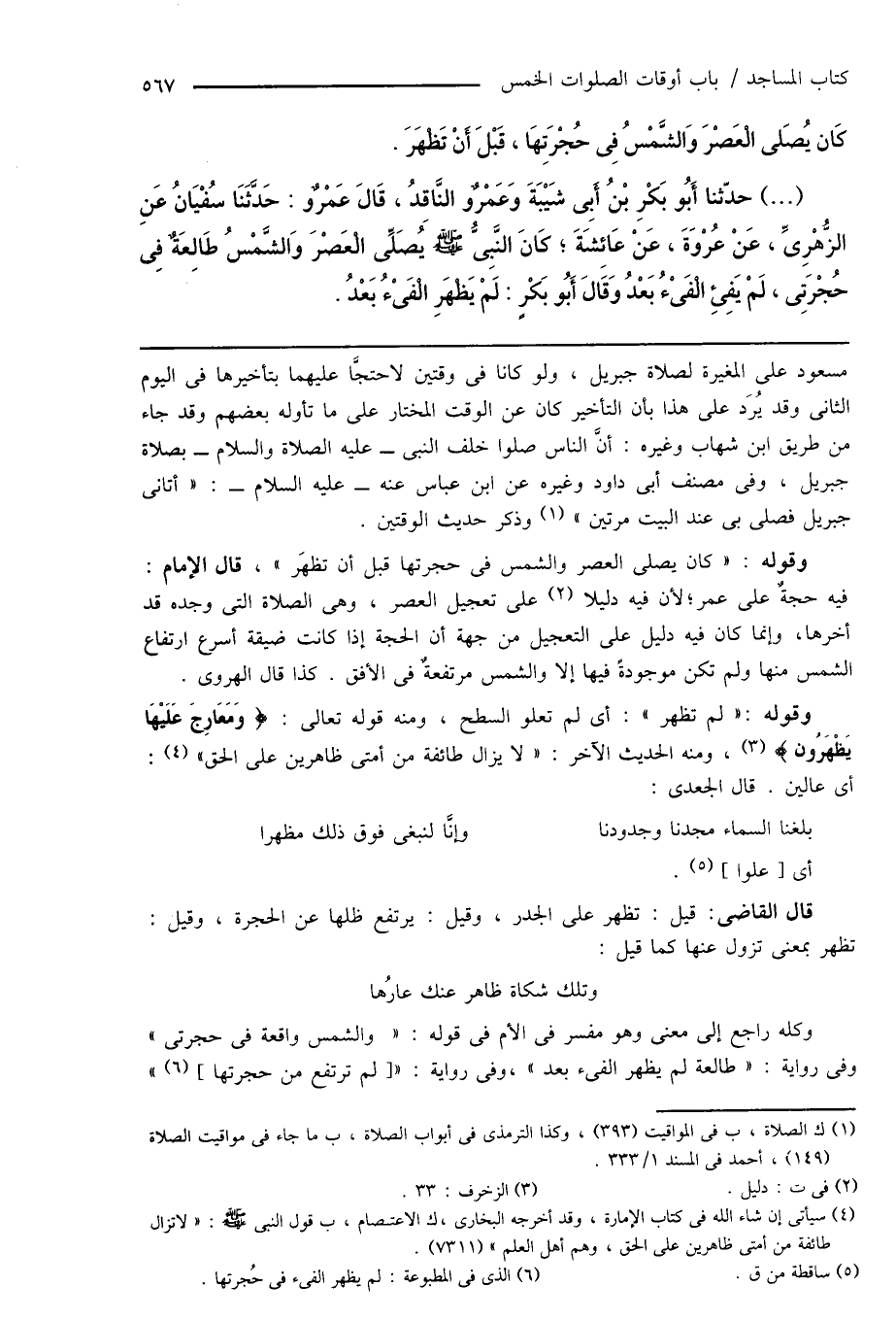 (...) حدّثنا أَبُو بَكْرِ بْنُ أَبِى شَيْبَةَ وَعَمْرٌو النَّاقِدُ، قَالَ عَمْرٌو: حَدَّثَنَا سُفْيَانُ عَنِ الزُّهْرِىِّ، عَنْ عُرْوَةَ، عَنْ عَائِشَةَ؛ كَانَ النَّبِىُّ صَلَّى اللهُ عَلَيْهِ وَسَلَّمَ يُصَلِّى الْعَصْرَ وَالشَّمْسُ طَالِعَةٌ فِى حُجْرَتِى، لَمْ يَفِئِ الْفَىْءُ بَعْدُ وَقَالَ أَبُو بَكْرٍ: لَمْ يَظْهَرِ الْفَىْءُ بَعْدُ.