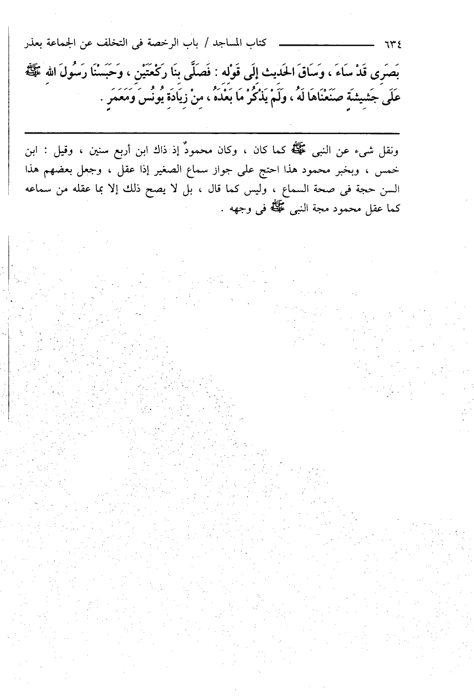 ونقل شيء عن النبي - صلى الله عليه وسلم - كما كان، وكان محمودٌ إذ ذاك ابن أربع سنين، وقيل: ابن خمس، وبخبر محمود هذا احتج على جواز سماع الصغير إذا عقل، وجعل بعضهم هذا السن حجة في صحة السماع، وليس كما قال، بل لا يصح ذلك إلا بما عقله من سماعه كما عقل محمود مجة النبي - صلى الله عليه وسلم - في وجهه.
