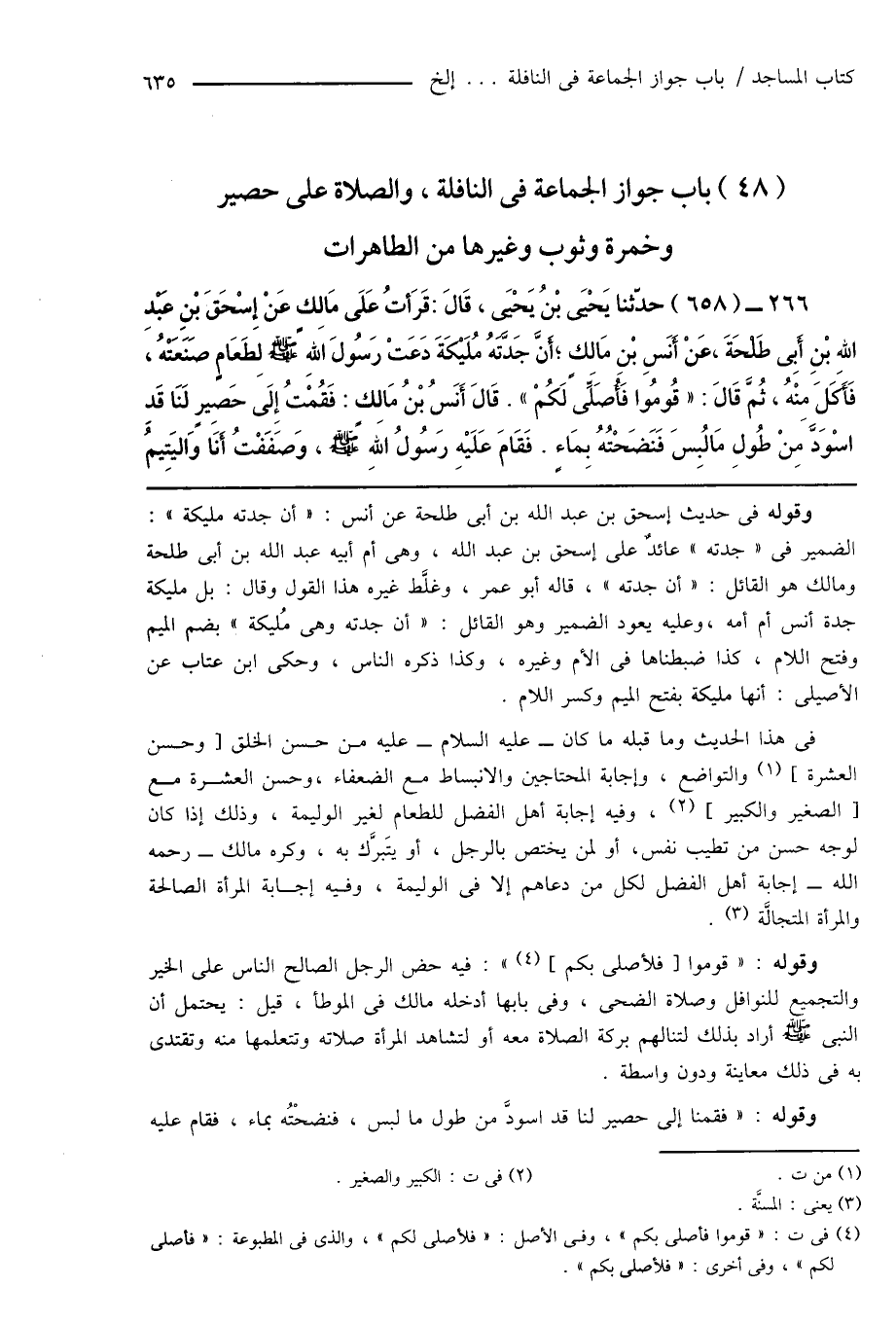 (48) باب جواز الجماعة فى النافلة، والصلاة على حصير وخمرة وثوب وغيرها من الطاهرات