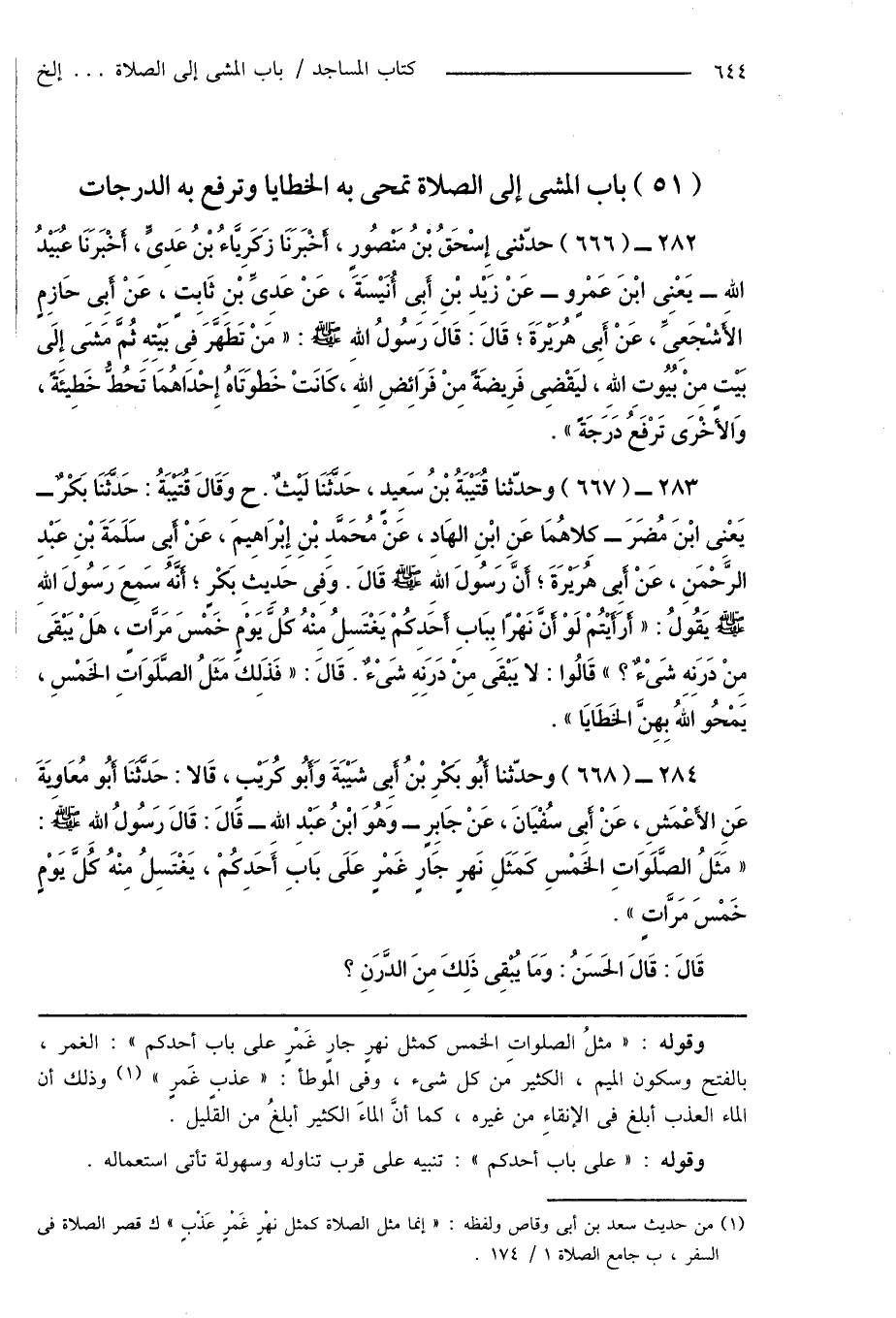 (51) باب المشى إلى الصلاة تمحى به الخطايا وترفع به الدرجات