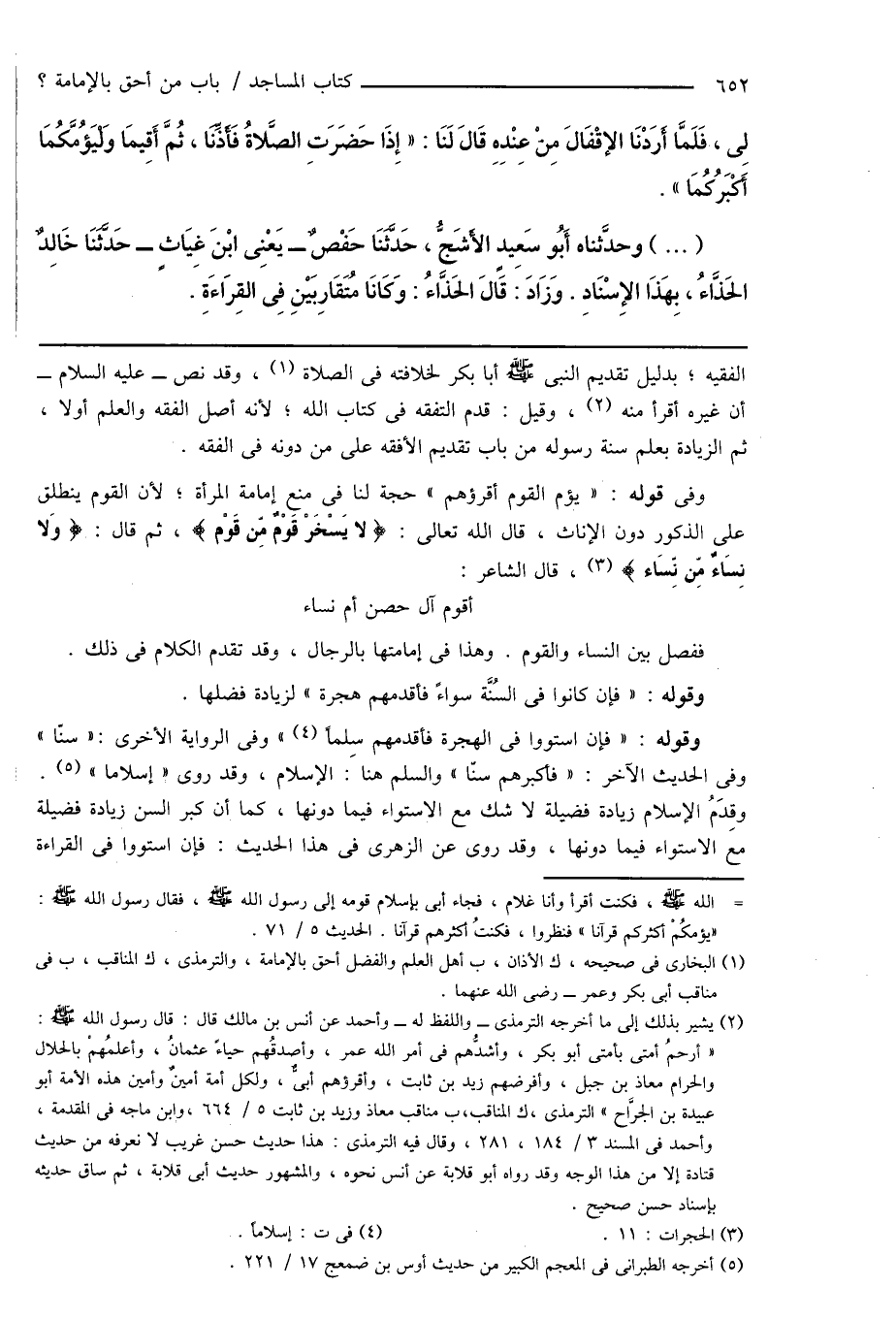 (¬1) البخارى فى صحيحه، ك الأذان، ب أهل العلم والفضل أحق بالإمامة، والترمذى، ك المناقب، ب فى مناقب أبى بكر وعمر - رضى الله عنهما.