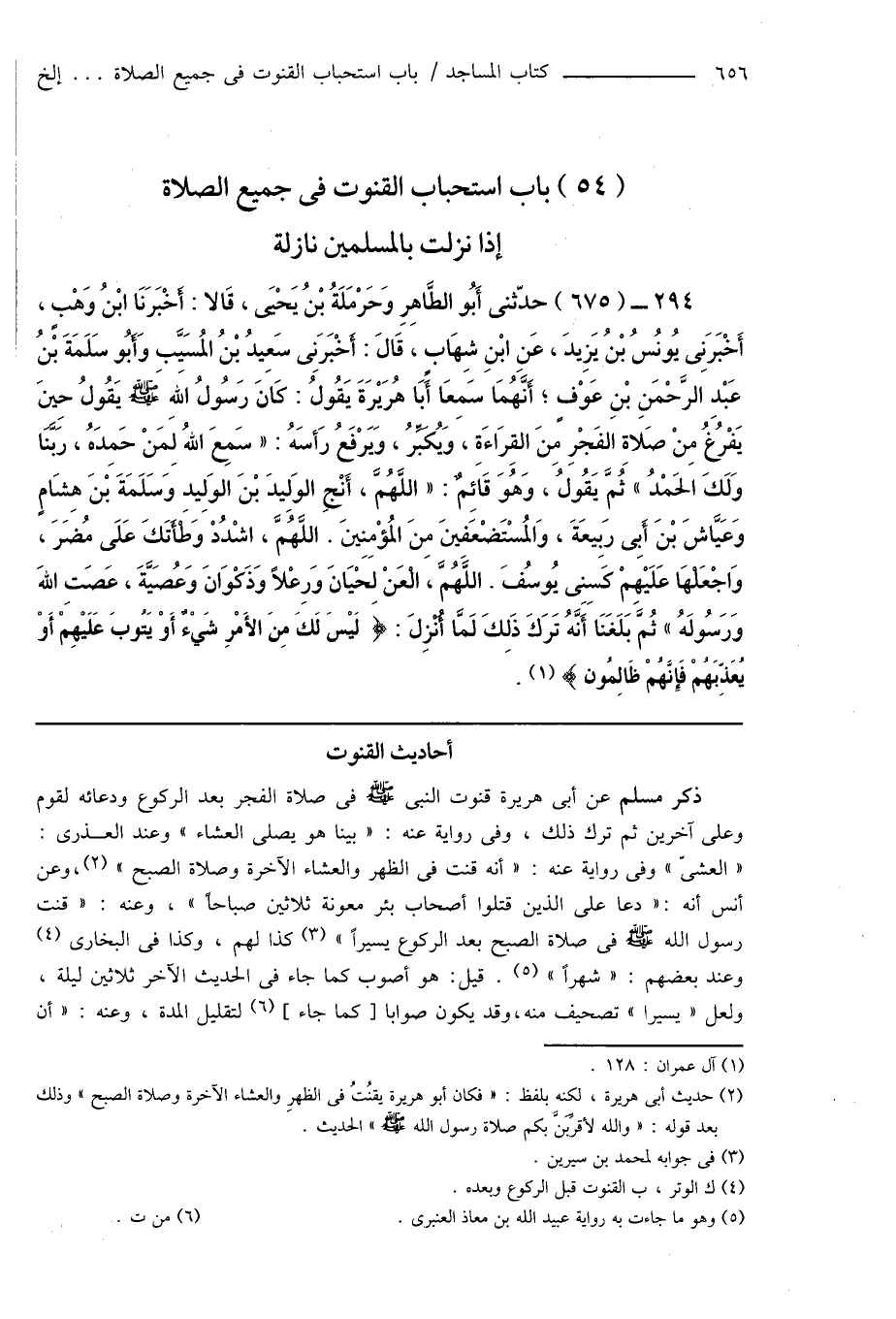 (¬2) حديث أبى هريرة، لكنه بلفظ: " فكان أبو هريرة يقنُتُ فى الظهرِ والعشاء الآخرة وصلاة الصبح " وذلك بعد قوله: " والله لأقرِّبَنَّ بكم صلاة رسول الله صَلَّى اللهُ عَلَيْهِ وَسَلَّمَ " الحديث.