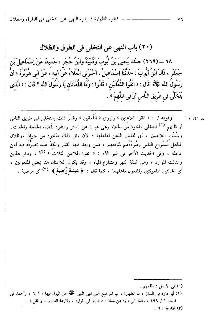 (20) باب النهى عن التخلى فى الطرق والظلال