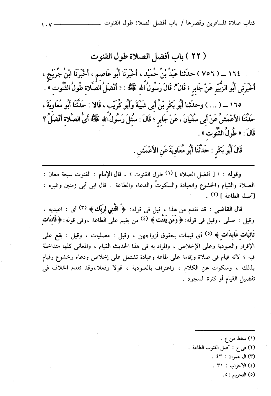 (22) باب أفضل الصلاة طول القنوت