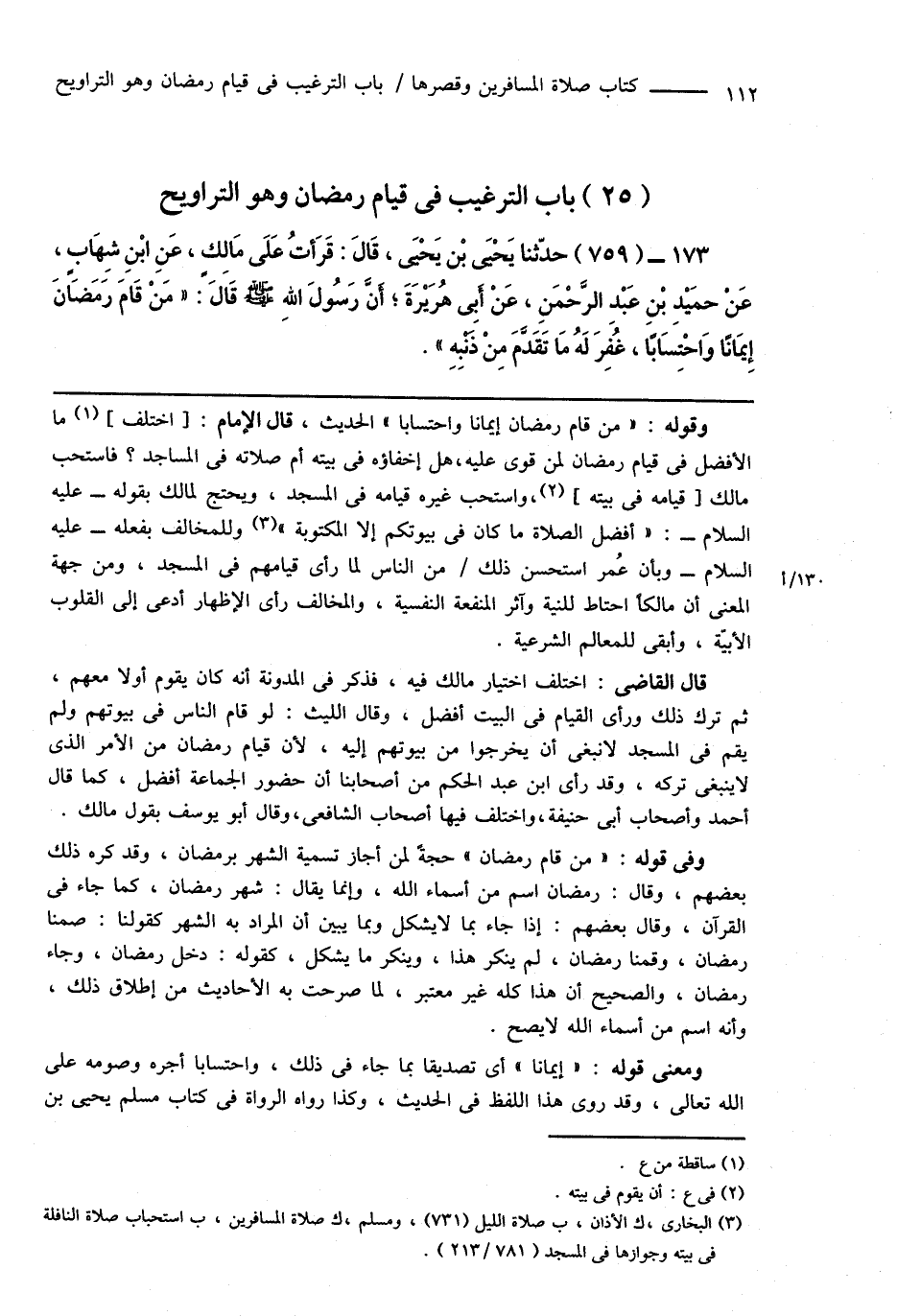 (25) باب الترغيب فى قيام رمضان وهو التراويح