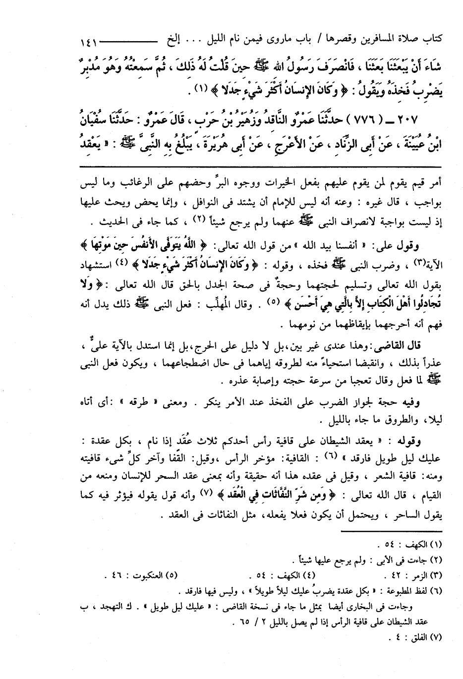 207 - (776) حَدَّثَنَا عَمْرٌو النَّاقِدُ وَزهُيْرُ بْنُ حَرْبٍ، قَالَ عَمْرٌو: حَدَّثَنَا سُفْيَانُ ابْنُ عُيَيْنَةَ، عَنْ أَبِى الزِّنَادِ، عَنْ الأَعْرَجِ، عَنْ أَبِى هُرَيْرَةَ، يَبْلُغُ بِهِ النَّبِىَّ صَلَّى اللهُ عَلَيْهِ وَسَلَّمَ: " يَعْقِدُ