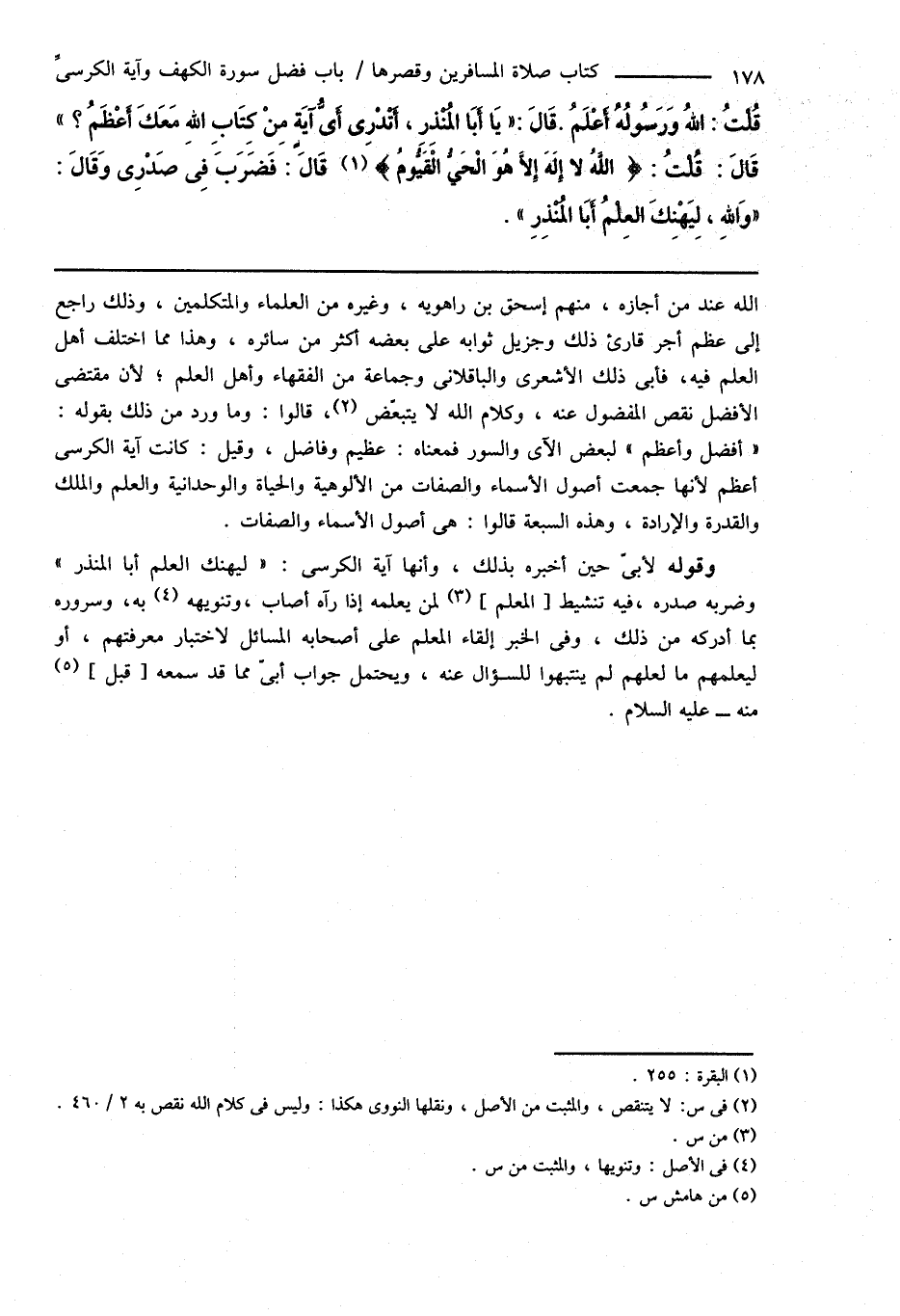 (¬2) فى س: لا يتنقص، والمثبت من الأصل، ونقلها النووى هكذا: وليس فى كلام الله نقص به 2/ 460.
