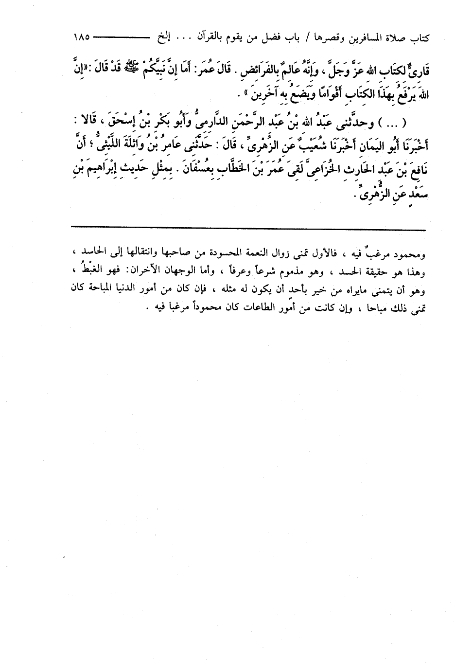 (...) وحدَّثنى عَبْدُ اللهِ بْنُ عَبْدِ الرَّحْمَنِ الدَّارِمِىُّ وَأَبُو بَكْرِ بْنُ إِسْحَاقَ، قَالا: أَخْبَرَنَا أَبُو اليَمَانِ أَخْبَرَنَا شُعَيْبٌ عَنِ الزُّهْرِىِّ، قَالَ: حَدَّثَنِى عَامِرُ بْنُ وَاثِلَةَ اللَّيْثِىُّ؛ أَنَّ نَافِعَ بْنَ عَبْدِ الحَارِثِ الخُزَاعِىَّ لَقِىَ عُمَرَ بْنَ الخَطَّابِ بِعُسْفَانَ. بِمِثْلِ حَدِيثِ إِبْرَاهِيمَ بْنِ سَعْدٍ عَنِ الزُّهْرِىِّ.