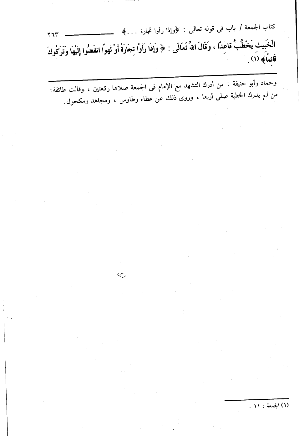 الْخَبِيثِ يَخْطُبُ قاعِدًا، وَقَالَ اللهُ تَعَالَى: {وَإِذَا رَأَوْا تِجَارَةً أَوْ لَهوًا انفَضُّوا إِلَيْهَا وَتَرَكُوكَ قَائِمًا} (¬1).