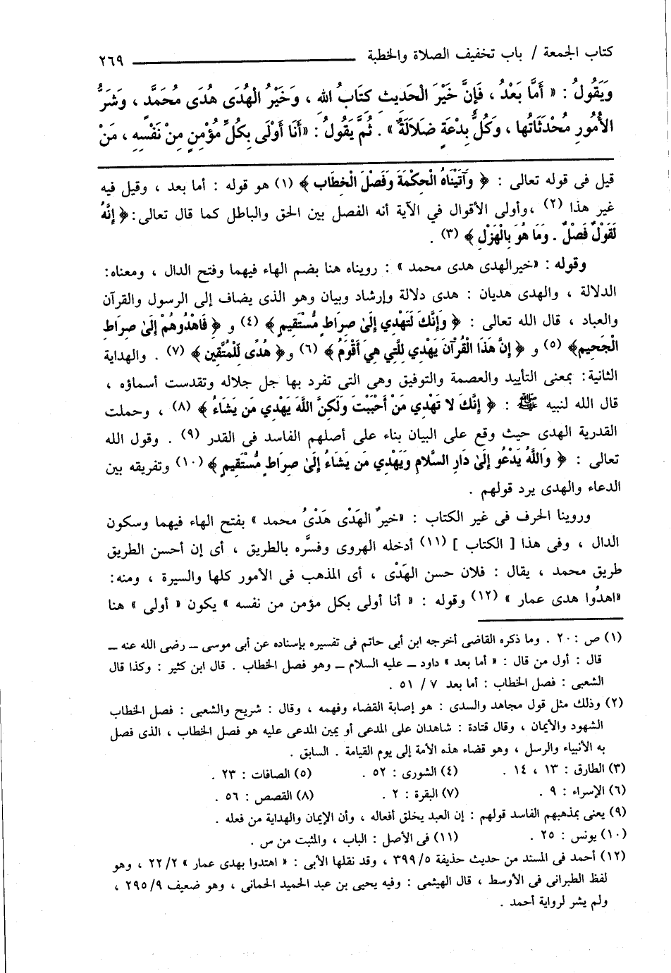 قيل فى قوله تعالى: {وَآتَيْنَاهُ الْحِكْمَةَ وَفَصْلَ الْخِطَاب} (¬1) هو قوله: أما بعد، وقيل فيه غير هذا (¬2)، وأولى الأقوال في الآية أنه الفصل بين الحق والباطل كما قال تعالى: {إِنَّهُ لَقَوْلٌ فَصْلٌ. وَمَا هُوَ بِالْهَزْلِ} (¬3).