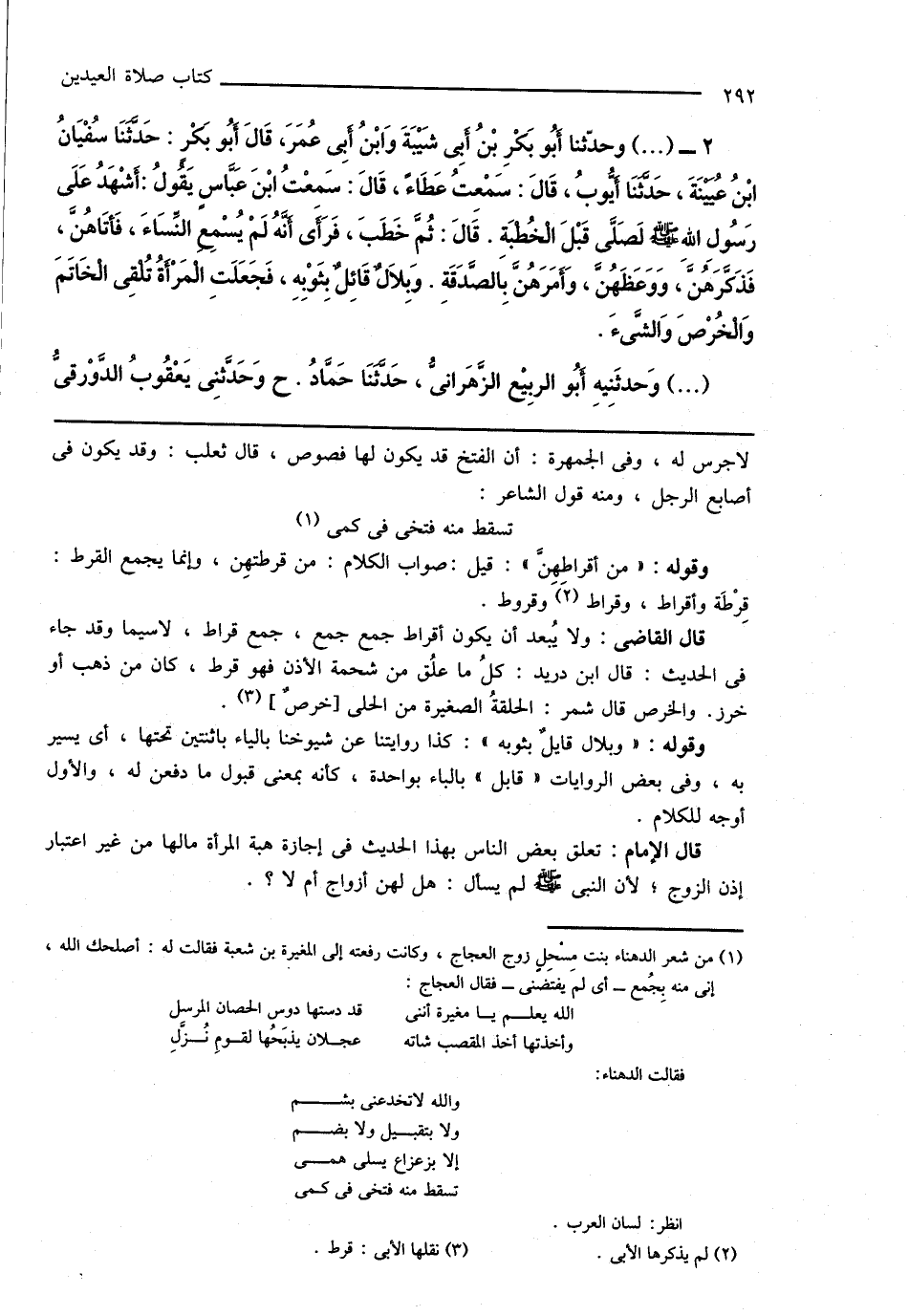 2 - (...) وحدّثنا أَبُو بَكْرِ بْنُ أَبِى شَيْبَةَ وَابْنُ أَبِى عُمَرَ، قَالَ أَبُو بَكْرٍ: حَدَّثَنَا سُفْيَانُ ابْنُ عُيَيْنَةَ، حَدَّثَنَا أَيُّوبُ، قَالَ: سَمْعِتُ عَطَاءً، قَالَ: سَمِعْتُ ابْنَ عَبَّاسٍ يَقُولُ: أَشْهَدُ عَلَى رَسُولِ اللهِ صَلَّى اللهُ عَلَيْهِ وَسَلَّمَ لَصَلَّى قَبْلَ الْخُطْبَةِ. قَالَ: ثُمَّ خَطَبَ، فَرَأَى أَنَّهُ لَمْ يُسْمِعِ النِّسَاءَ، فَأَتَاهُنَّ، فَذَكَرَهُنَّ، وَوَعَظَهُنَّ، وَأَمَرَهُنَّ بِالصَّدَقَةِ. وَبِلَالٌ قَائِلٌ بِثَوْبِهِ، فَجَعَلَتِ الْمَرْأَةُ تُلْقِى الْخَاتَمَ وَالْخُرْصَ وَالشَّىءَ.