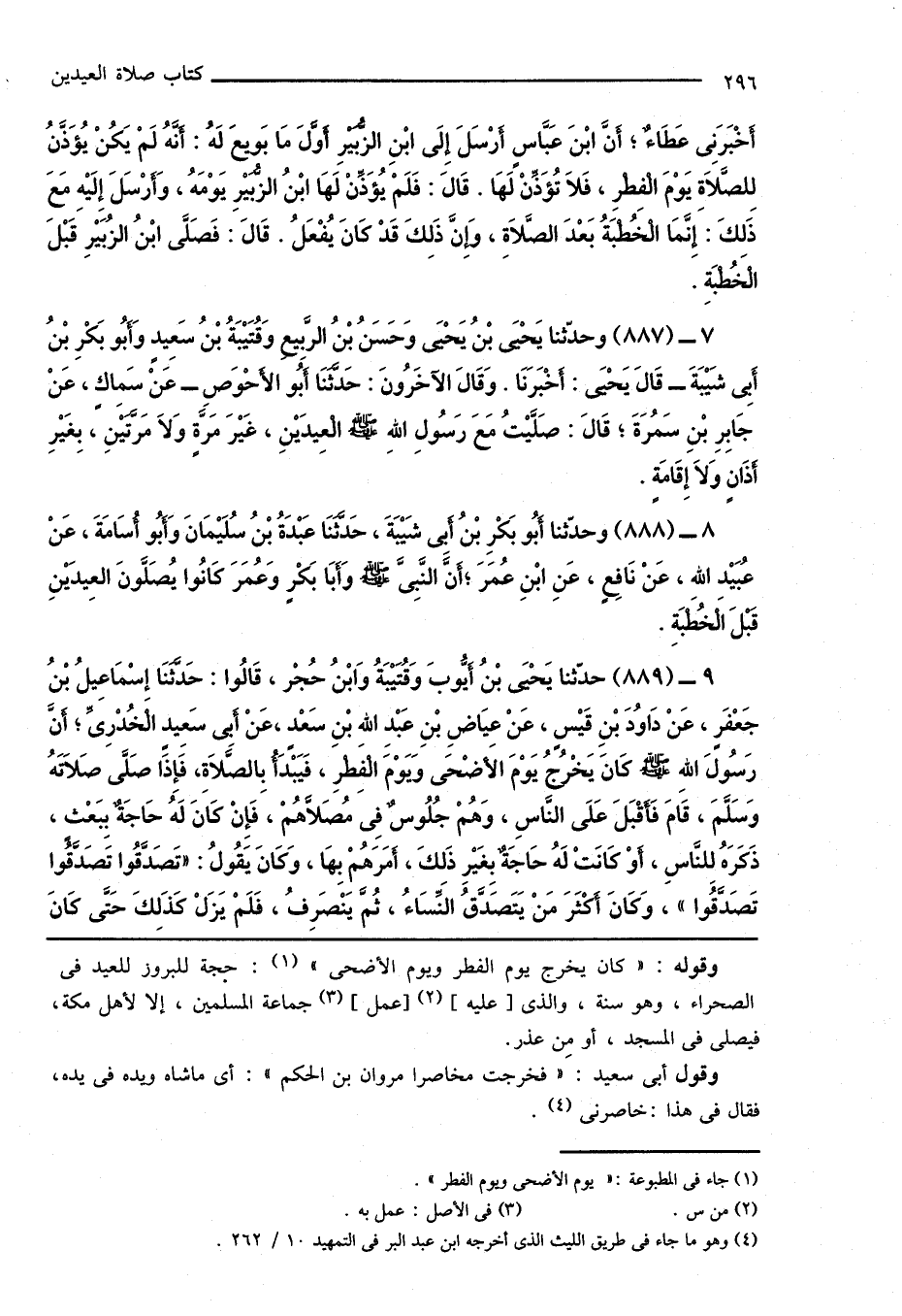 9 - (889) حدّثنا يَحْيَى بْنُ أَيُّوبَ وَقُتَيْبَةُ وَابْنُ حُجْرٍ، قَالُوا: حَدَّثَنَا إِسْمَاعِيلُ بْنُ جَعْفَرٍ، عَنْ دَاوُدَ بْنِ قَيْسٍ، عَنْ عِيَاضِ بْنِ عَبْدِ اللهِ بْنِ سَعْدٍ، عَنْ أَبِى سَعِيدٍ الْخُدْرِىِّ؛ أَنَّ رَسُولَ اللهِ صَلَّى اللهُ عَلَيْهِ وَسَلَّمَ كَانَ يَخْرُجُ يَوْمَ الأَضْحَى وَيَوْمَ الْفِطْرِ، فَيَبْدَأُ بِالصَّلَاةِ، فَإِذَا صَلَّى صَلَاتَهُ وَسَلَّمَ، قَامَ فَأَقْبَلَ عَلَى النَّاسِ، وَهُمْ جُلُوسٌ فِى مُصَلَّاهُمْ، فَإِنْ كَانَ لَهُ حَاجَةٌ بِبَعْثٍ، ذَكَرَهُ لِلنَّاسِ، أَوْ كَانَتْ لَهُ حَاجَةٌ بِغَيرِ ذَلِكَ، أَمَرَهُمْ بِهَا، وَكَانَ يَقُولُ: " تَصَدَّقُوا تَصَدَّقُوا تَصَدَّقُوا "، وَكَانَ أَكْثَرَ مَنْ يَتَصَدَّقُ النِّسَاءُ، ثُمَّ يَنْصَرِفُ، فَلَمْ يَزَلْ كَذَلِكَ حَتَّى كَانَ