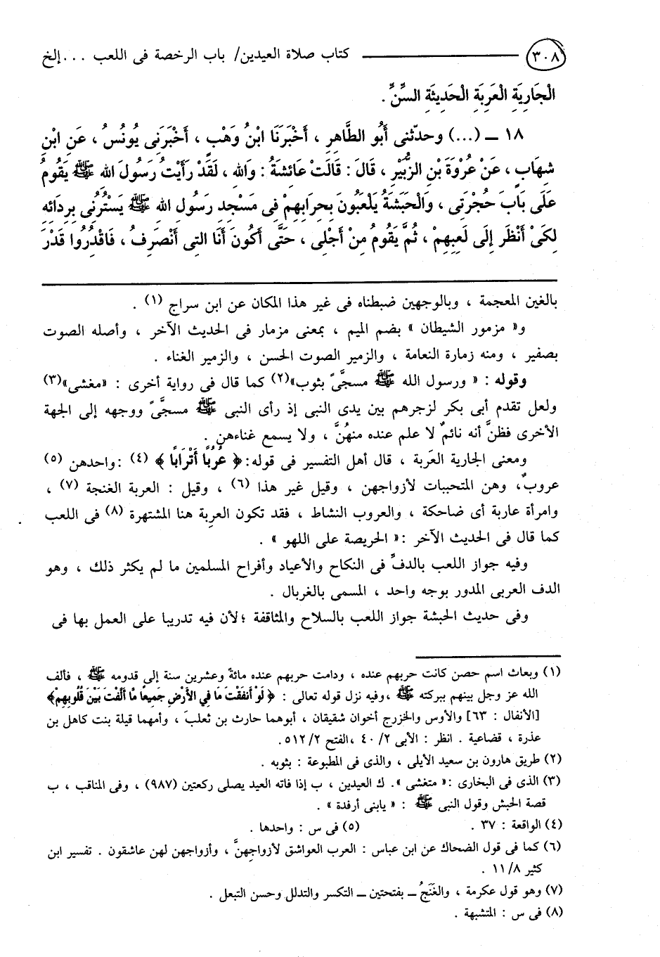 18 - (...) وحدَّثنى أَبُو الطَّاهِرِ، أَخْبَرَنَا ابْنُ وَهْبٍ، أَخْبَرَنِى يُونُسُ، عَنِ ابْنِ شِهَابٍ، عَنْ عُرْوَةَ بْنِ الزُّبَيْرِ، قَالَ: قَالَتْ عَائِشَةُ: وَاللهِ، لَقَدْ رَأَيْتُ رَسُولَ اللهِ صَلَّى اللهُ عَلَيْهِ وَسَلَّمَ يَقُومُ عَلَى بَابَ حُجْرَتِى، وَالْحَبَشَةُ يَلْعَبُونَ بِحِرَابِهِمْ فِى مَسْجِدِ رَسُولِ اللهِ صَلَّى اللهُ عَلَيْهِ وَسَلَّمَ يَسْتُرُنِى بِرِدَائِهِ لِكَىْ أَنْظَر إِلَى لَعِبِهِمْ، ثُمَّ يَقُومُ مِنْ أَجْلِى، حَتَّى أَكُونَ أَنَا التِى أَنْصَرِفُ، فَاقْدِرُوا قَدْرَ