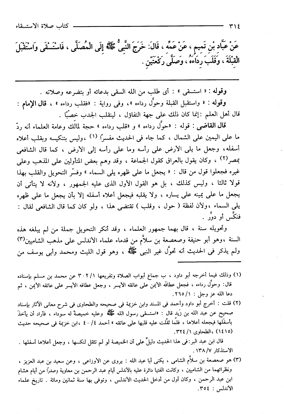 (¬1) وذلك فيما أخرجه أبو داود، ب جماع أبواب الصلاة وتفريعها 1/ 302 عن محمد بن مسلم بإسناده قال: وحوَّل رداءه، فجعل عطافَه الأيمن على عاتقه الأيسر، وجعل عطافه الأيسر على عاتقه الأيمن، ثم دعا الله عز وجل: 1/ 265.