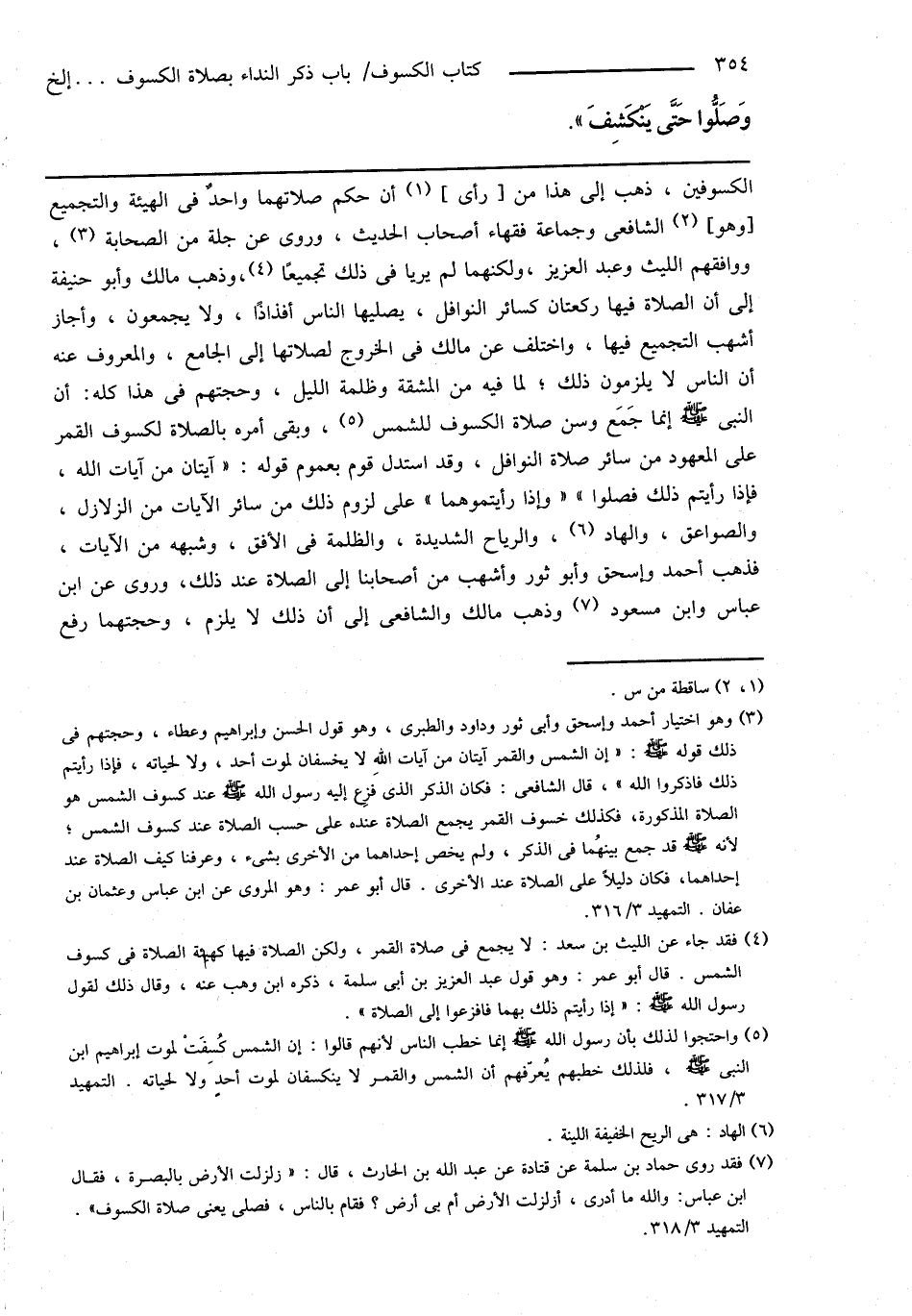 (¬5) واحتجوا لذلك بأن رسول الله صَلَّى اللهُ عَلَيْهِ وَسَلَّمَ إنما خطب الناس لأنهم قالوا: إن الشمس كُسِفَتْ لموت إبراهيم ابن النبى صَلَّى اللهُ عَلَيْهِ وَسَلَّمَ، فلذلك خطبهم يُعرّفهم أن الشمس والقمر لا ينكسفان لموت أحدٍ ولا لحياته. التمهيد 3/ 317.