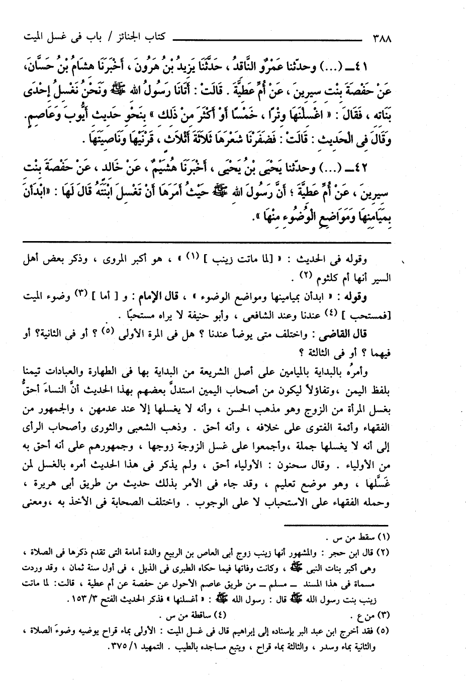 (¬5) فقد أخرج ابن عبد البر بإسناده إلى إبراهيم قال فى غسل الميت: الأولى بماء قراح يوضيه وضوءَ الصلاة، والثانية بماء وسدر، والثالثة بماء قراح، ويتبع مساجده بالطيب. التمهيد 1/ 375.